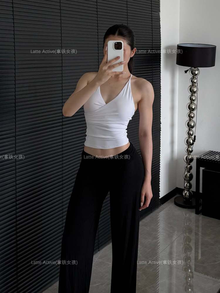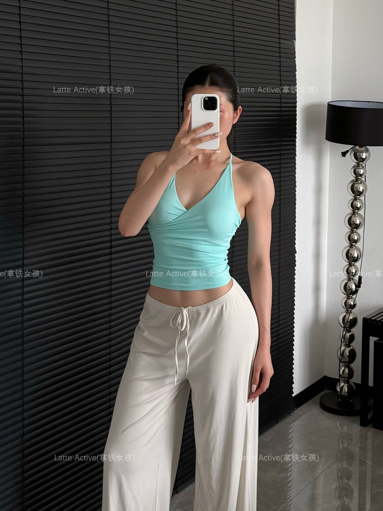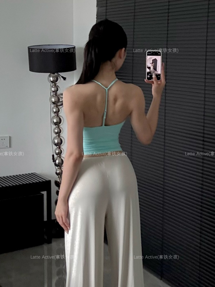 라떼걸 슬리밍 홀터넥 조끼 서스펜더 여름 푸시업 스포츠 슬림 조끼 솔리드 컬러 통근스토어 가기