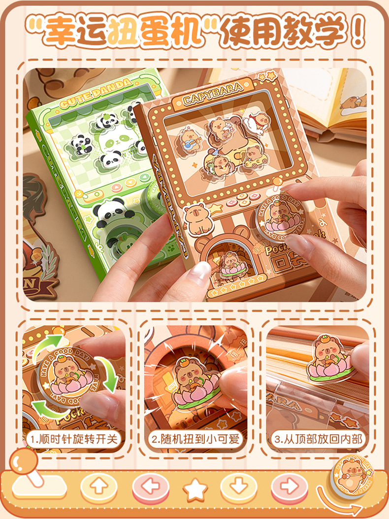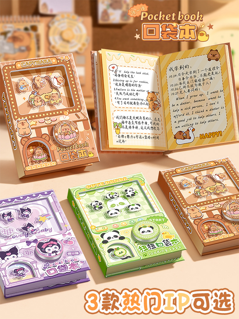 카바베어 만화 가샤폰 머신 커버 노트북 내부 페이지 메커니즘 감압 선물 도서 컬러 페이지 도서