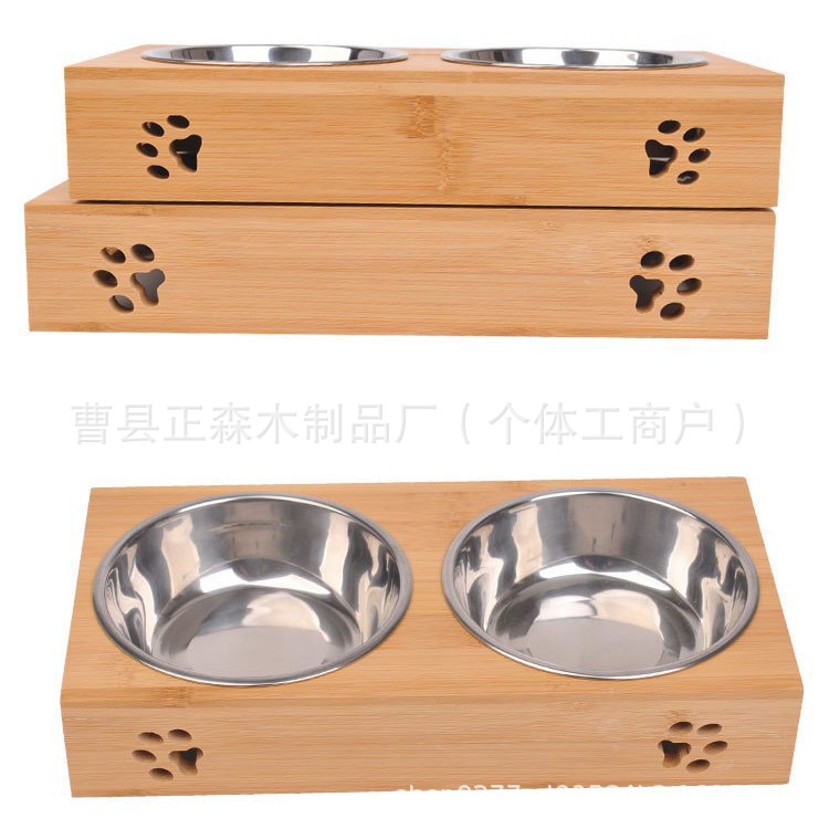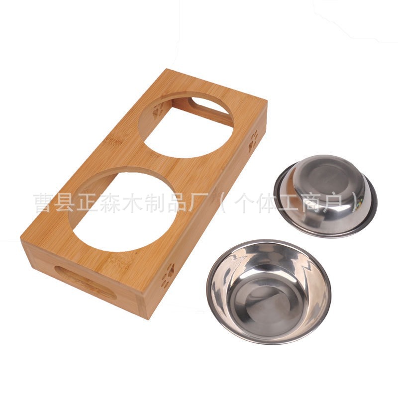 재고 있음 나무 애완 동물 그릇 랙 대나무 이동식 애완 동물 사료 그릇 목 보호대 애완 동물 식탁 피더 고양이 그릇 랙스토어 가기