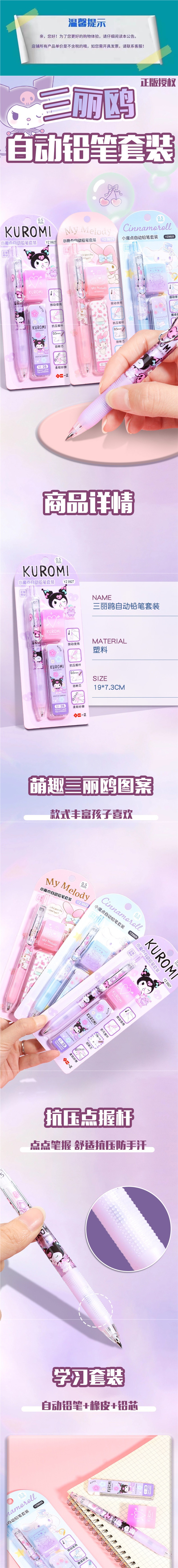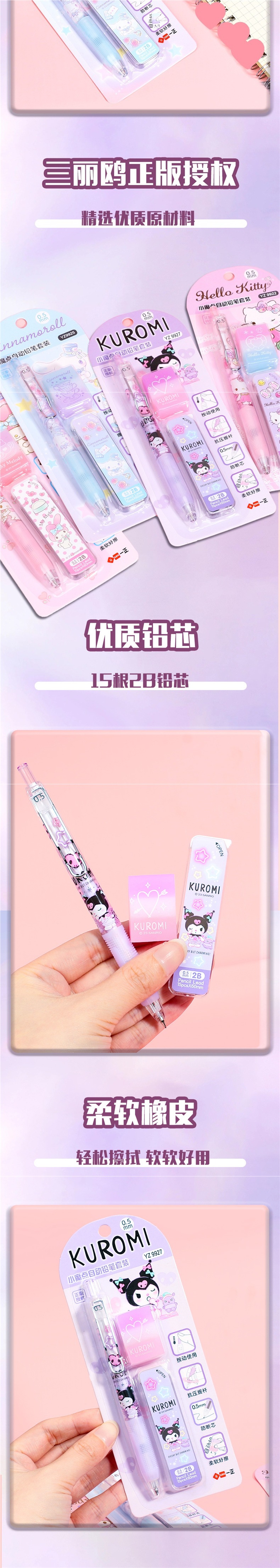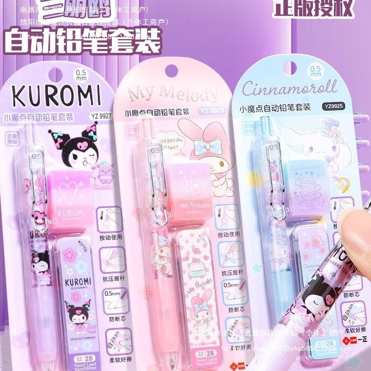 Sanrio 자동 연필 세트 Kuromi 고급 초등학교 샤프 펜슬 계피 개 플라스틱 도매스토어 가기