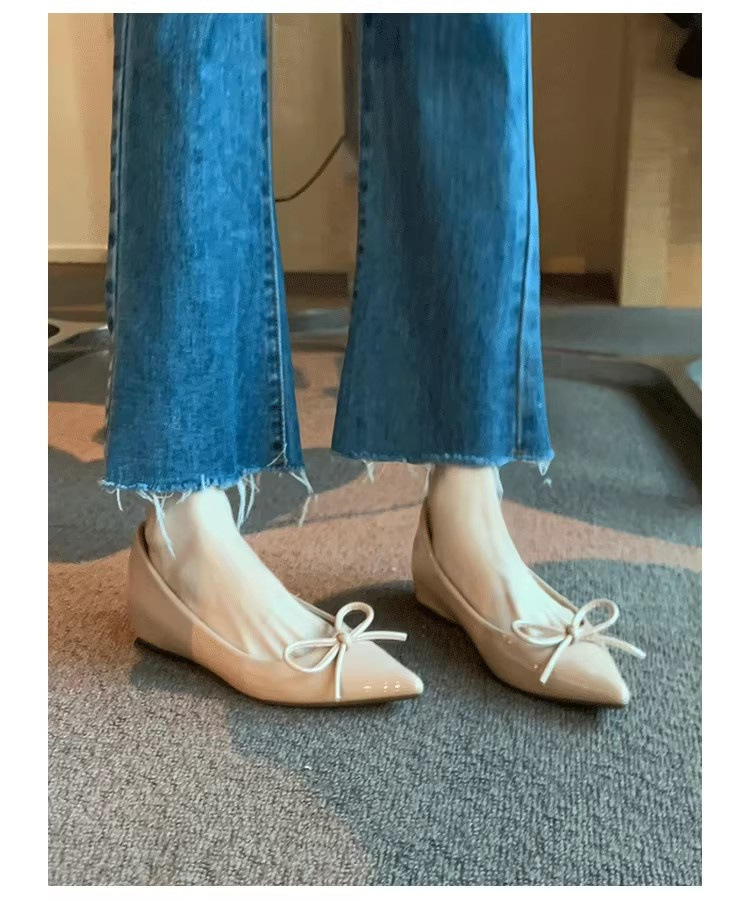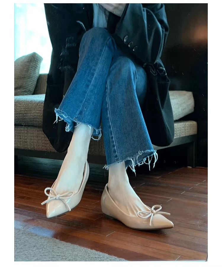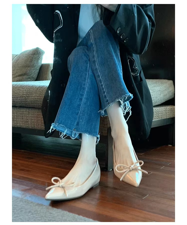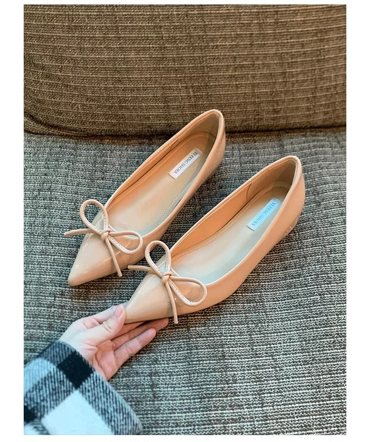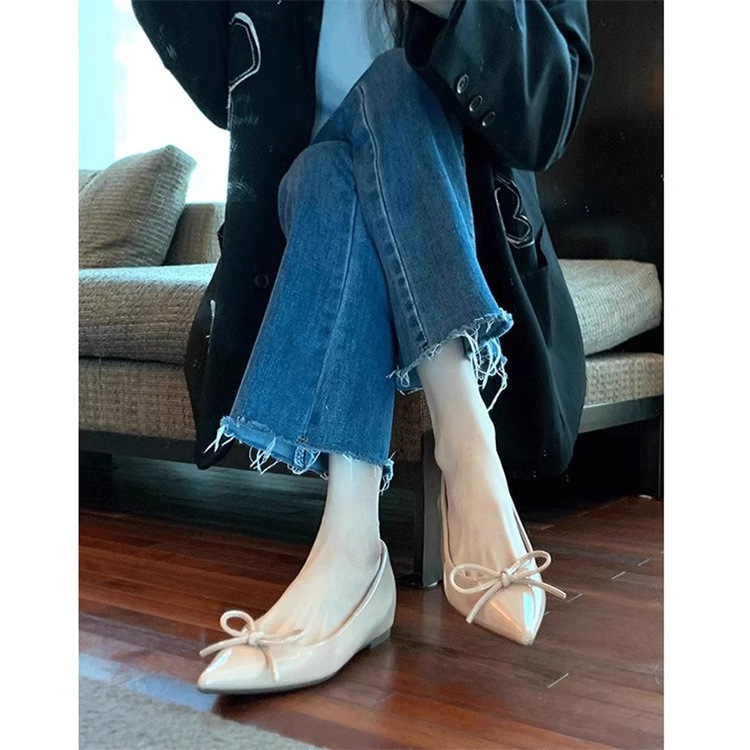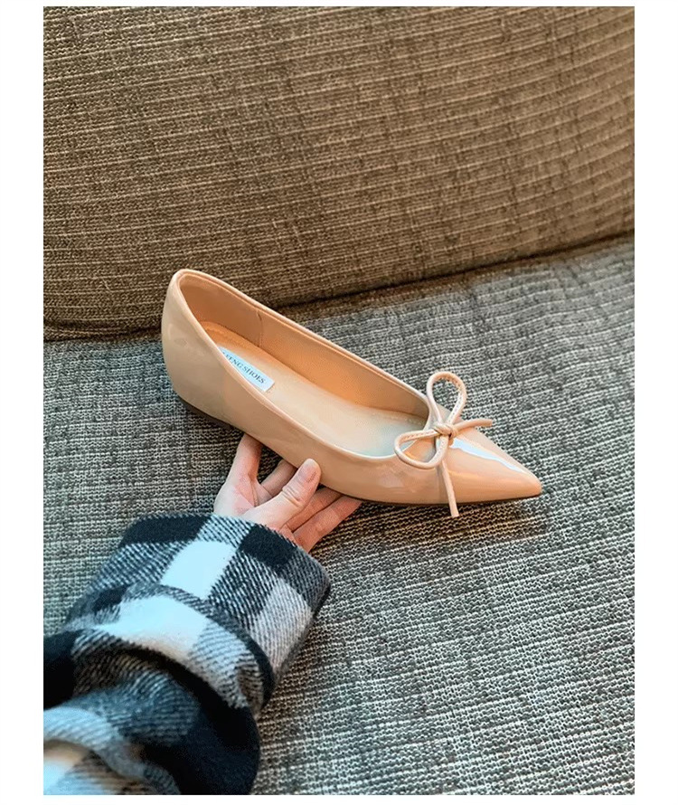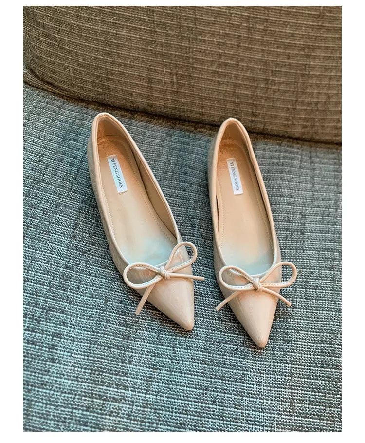 봄과 가을 누드 컬러 포인티드 토 보우 여성용 플랫 슈즈 2025 신상 펌프스 슈즈 젠틀 이브닝 슈즈스토어 가기