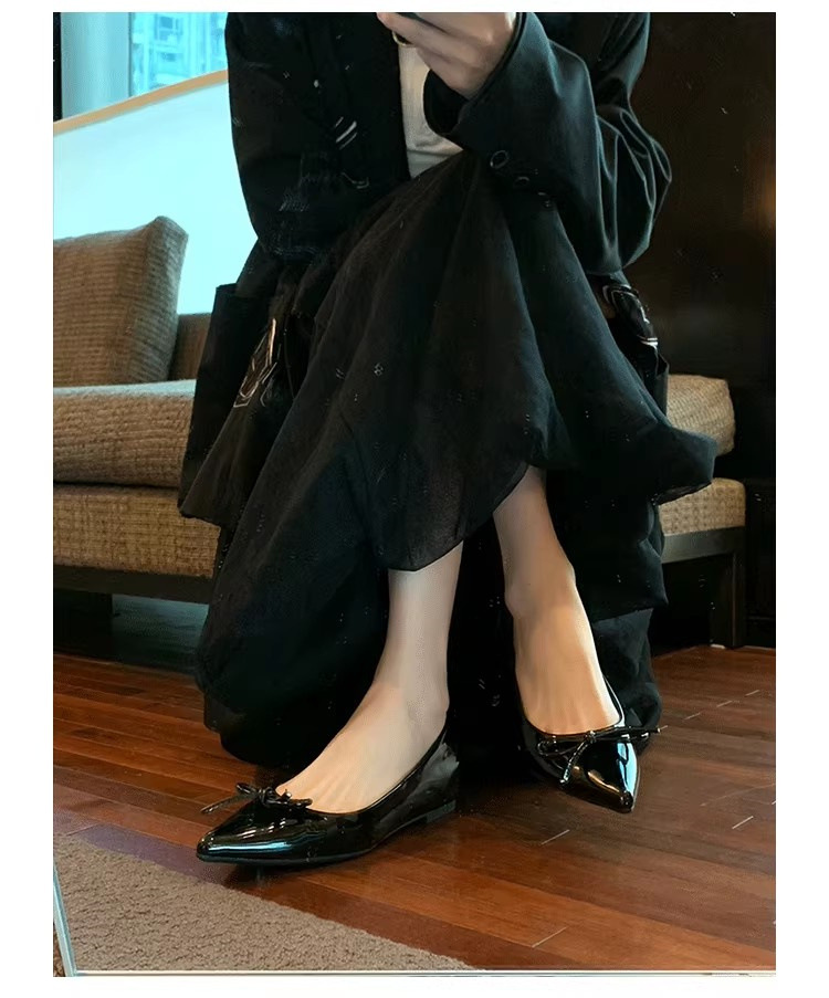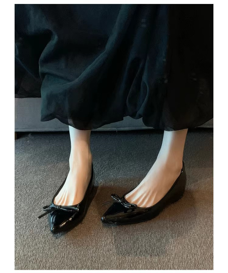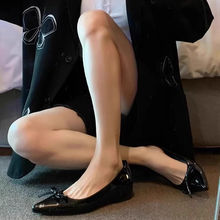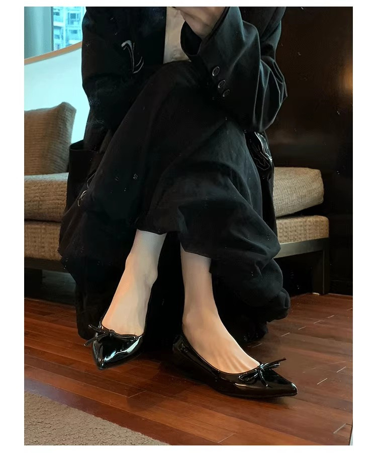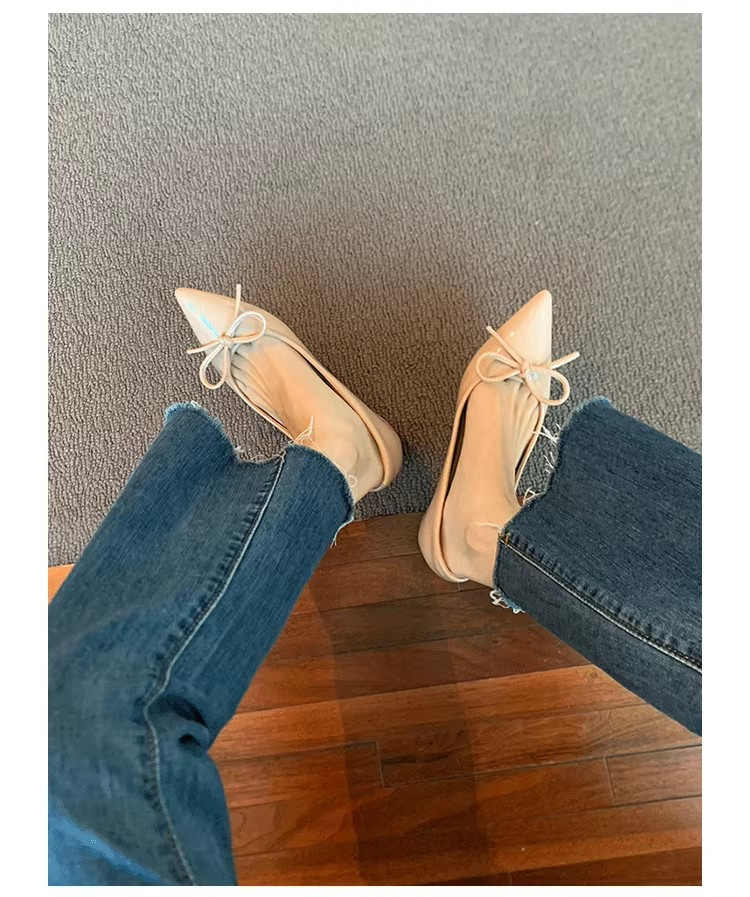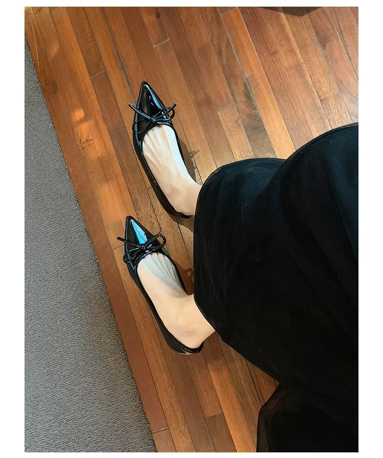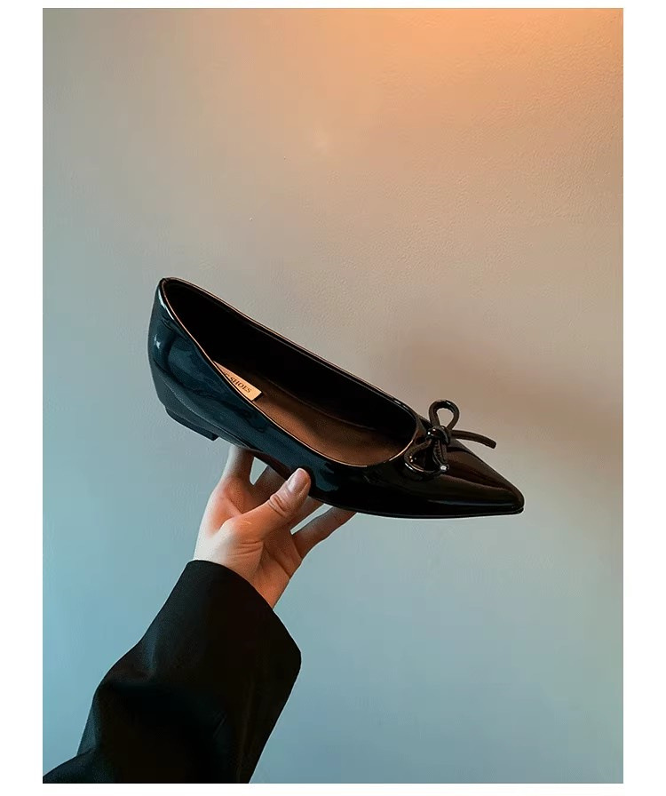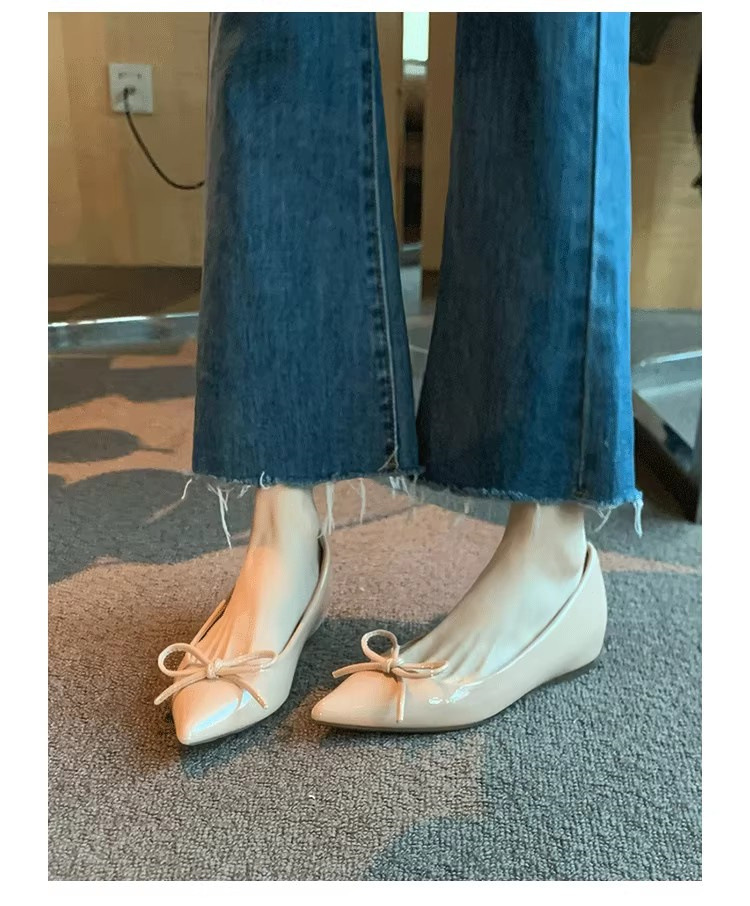봄과 가을 누드 컬러 포인티드 토 보우 여성용 플랫 슈즈 2025 신상 펌프스 슈즈 젠틀 이브닝 슈즈스토어 가기