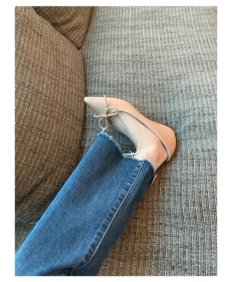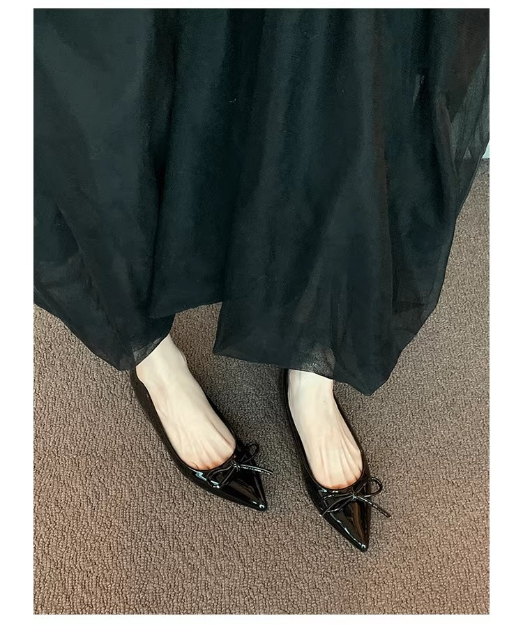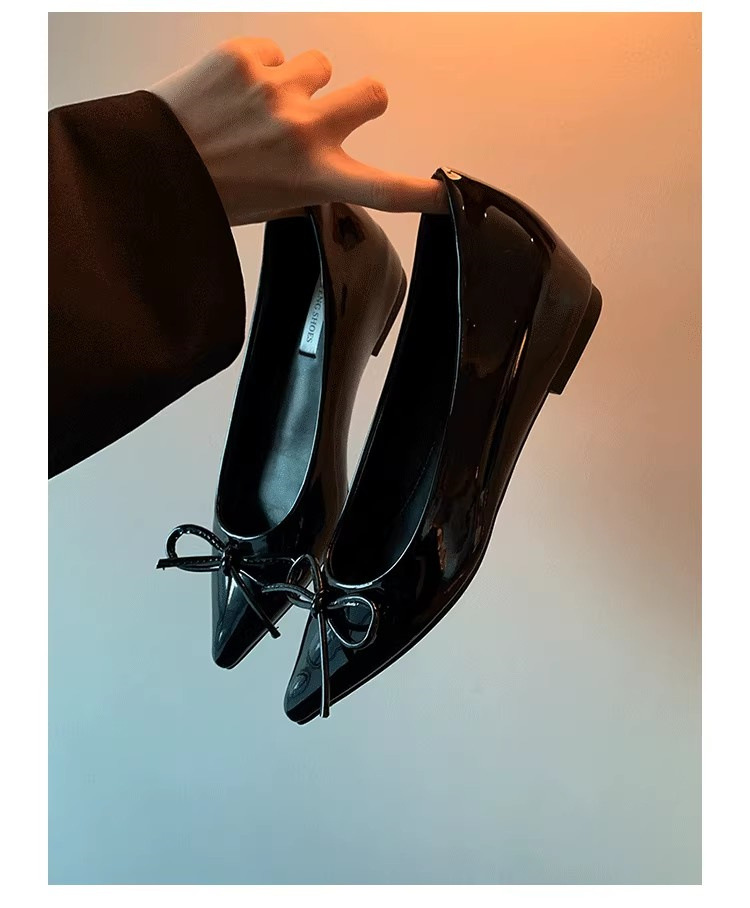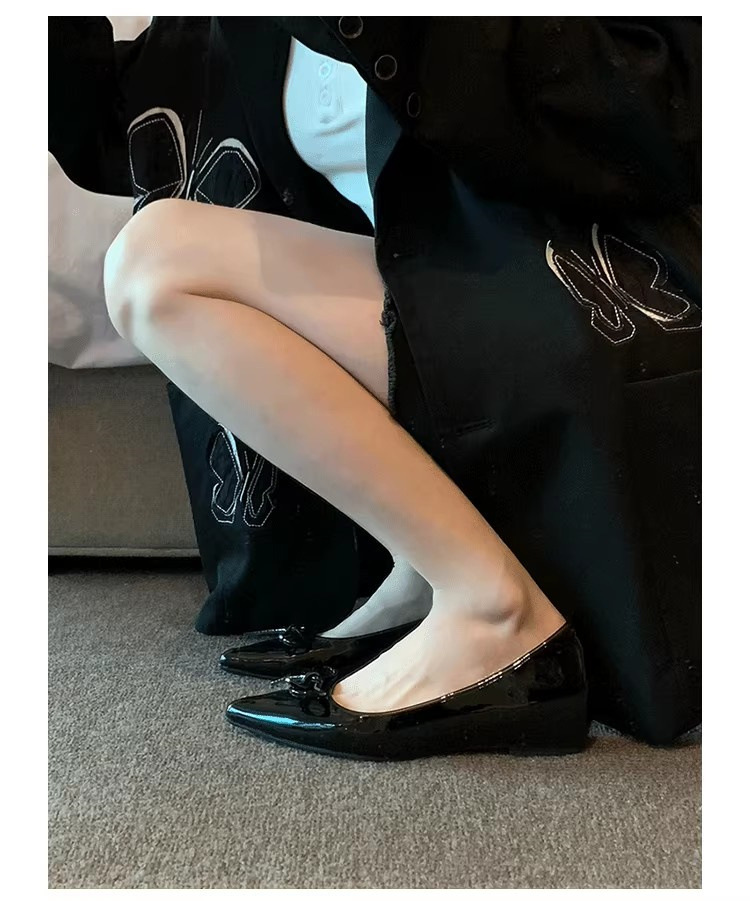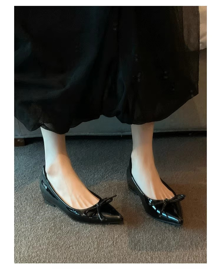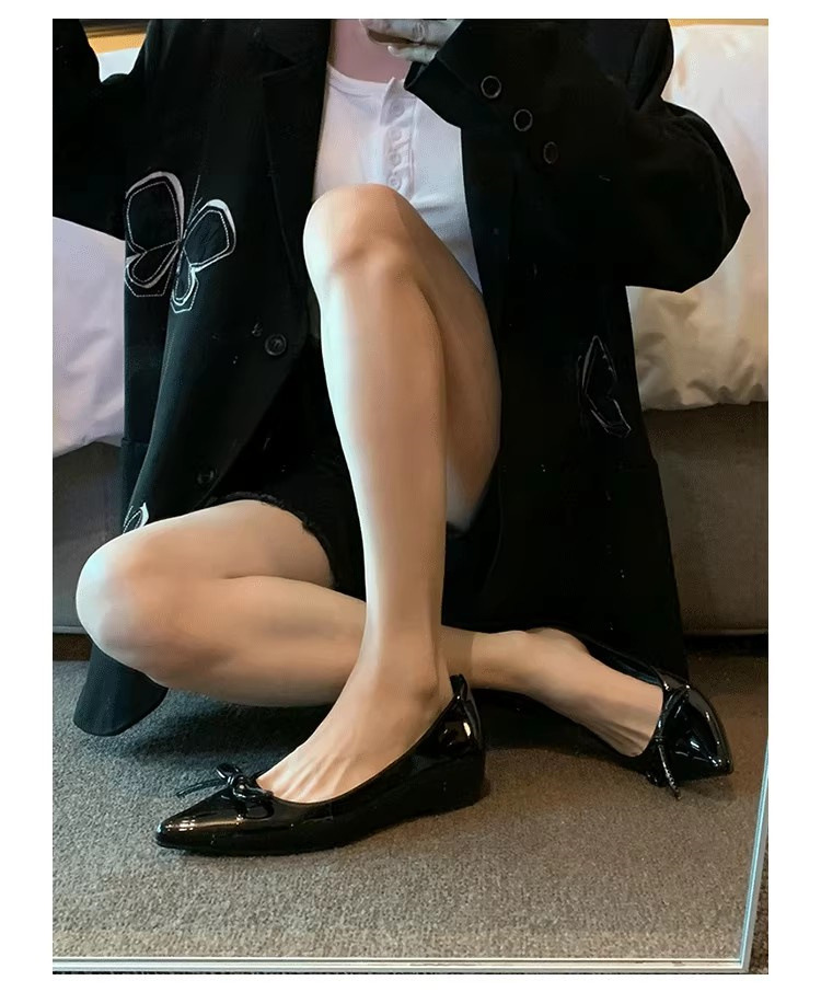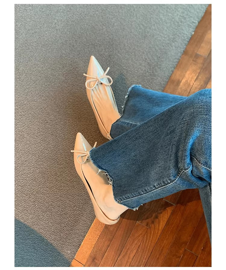 봄과 가을 누드 컬러 포인티드 토 보우 여성용 플랫 슈즈 2025 신상 펌프스 슈즈 젠틀 이브닝 슈즈스토어 가기