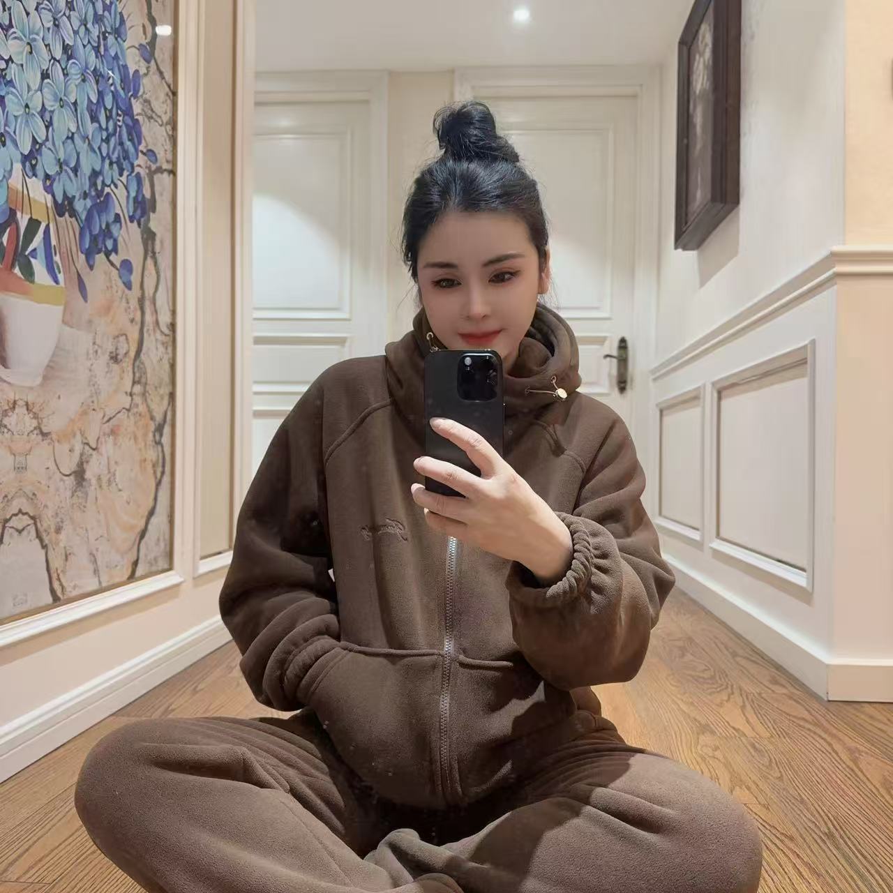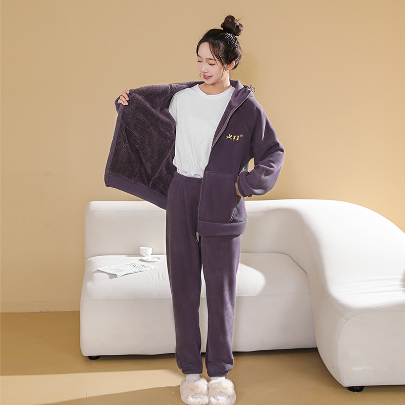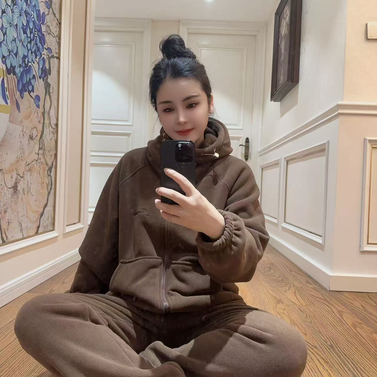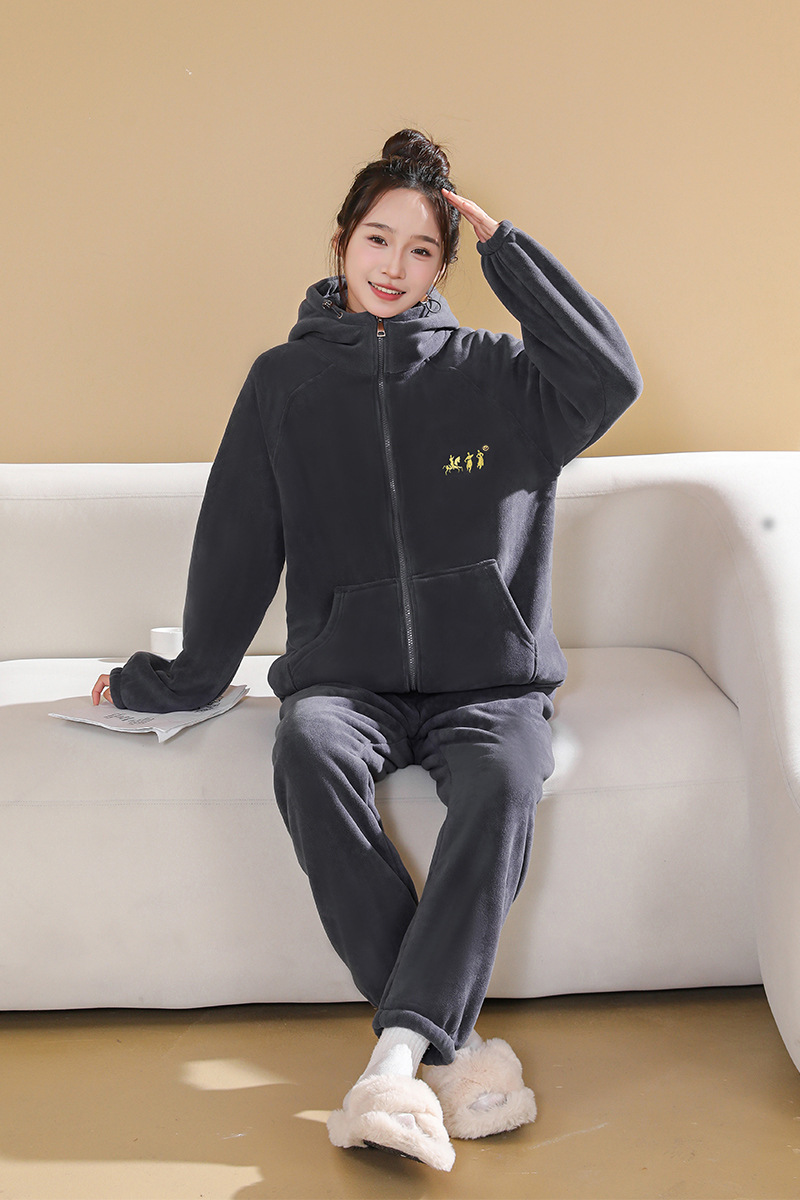 겨울 돌고래 벨벳 여성 따뜻한 후드 플러스 벨벳 두꺼운 올리 벨벳 캐주얼 루즈 웨어러블 홈웨어 슈트