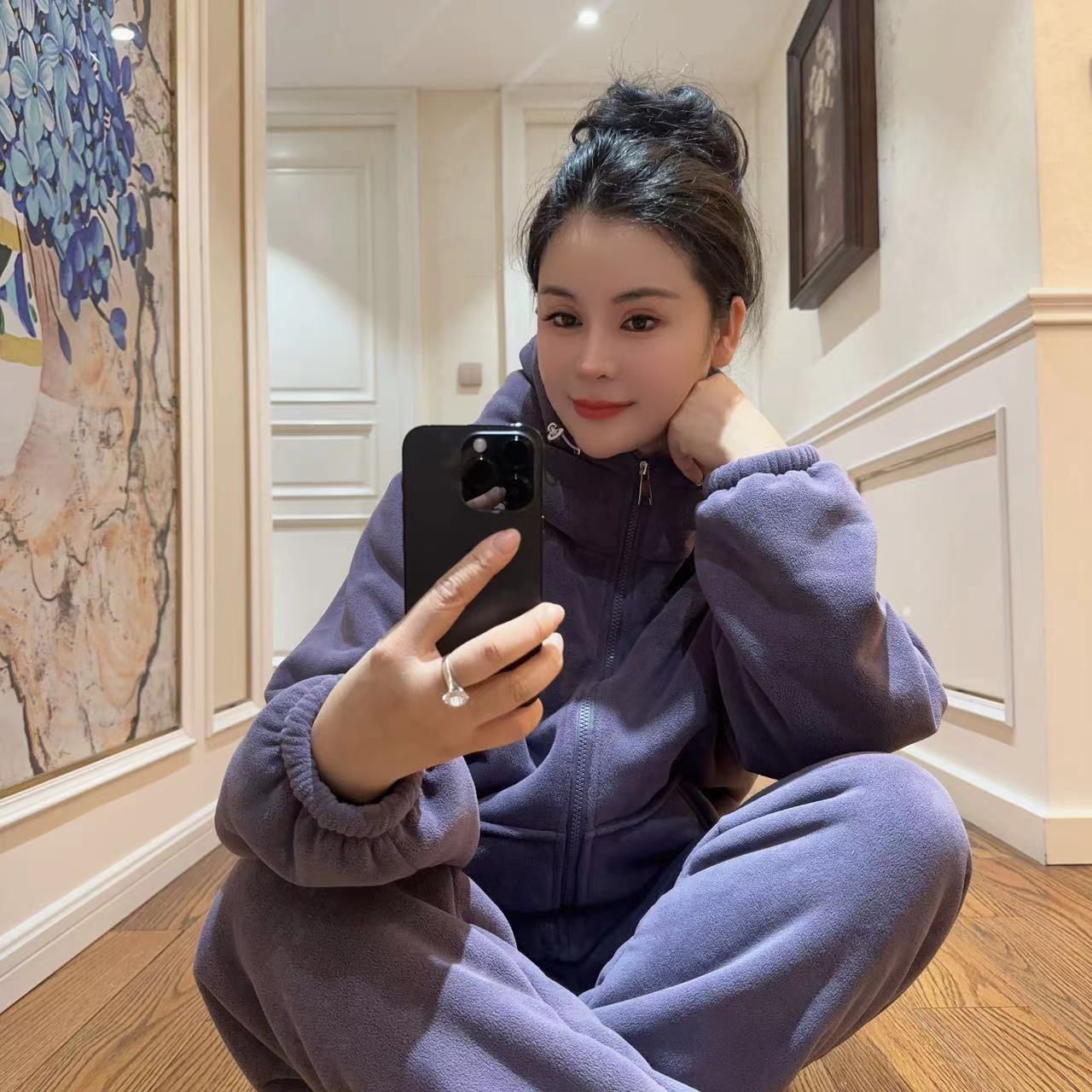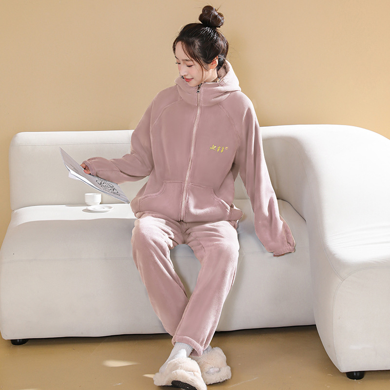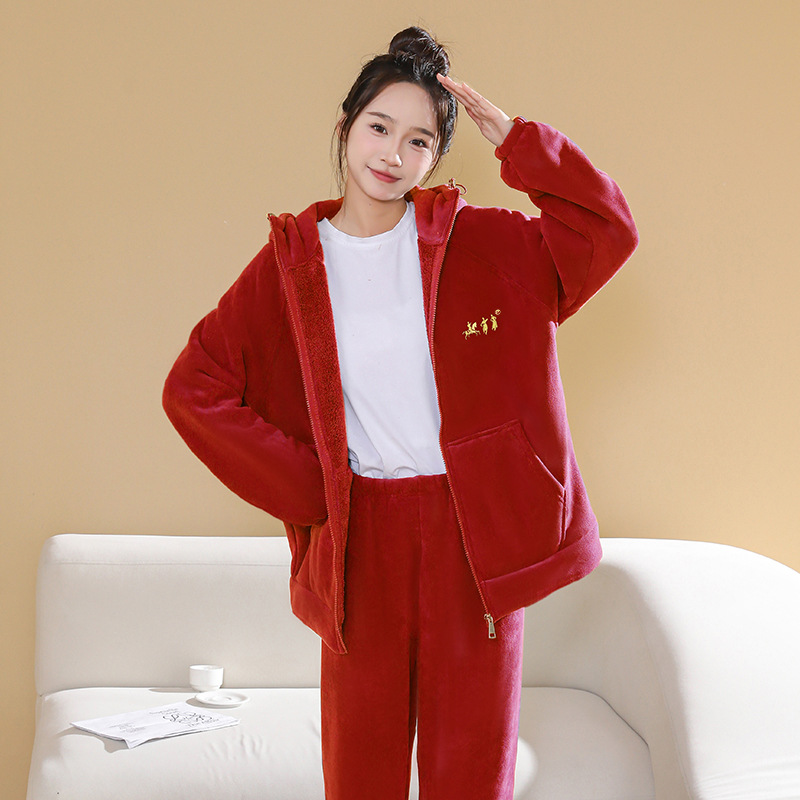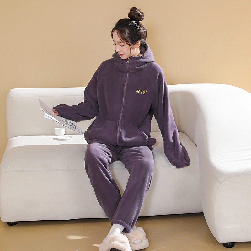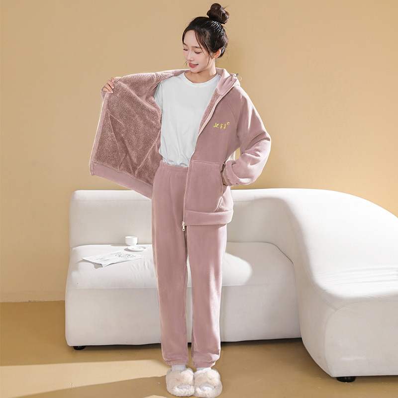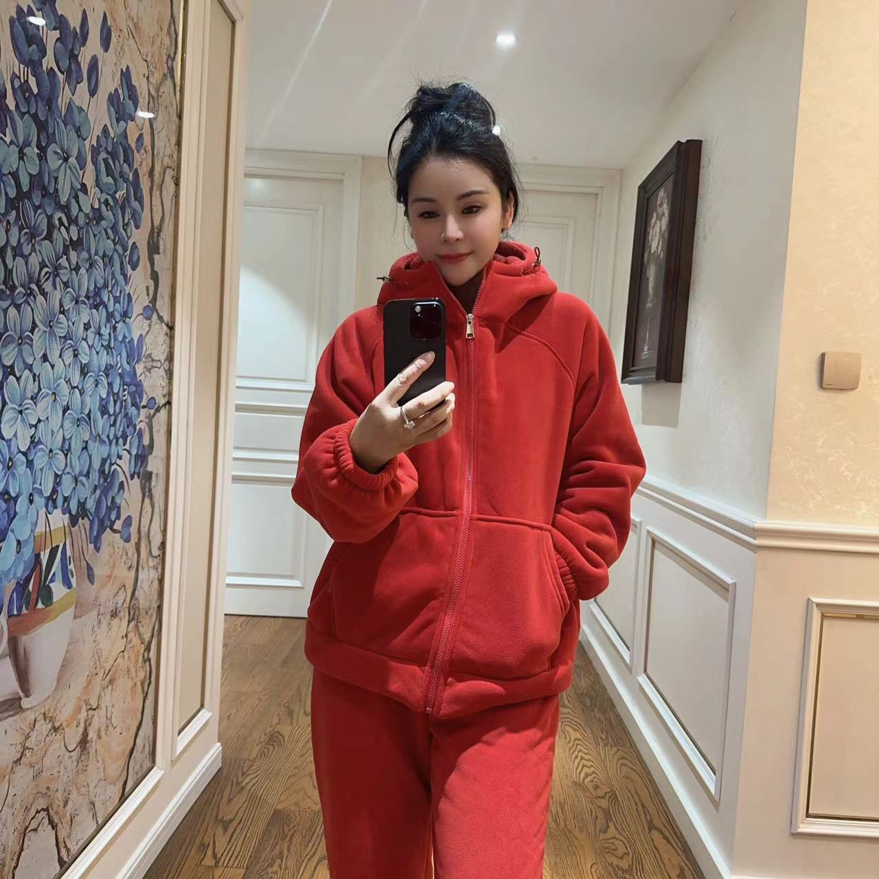 겨울 돌고래 벨벳 여성 따뜻한 후드 플러스 벨벳 두꺼운 올리 벨벳 캐주얼 루즈 웨어러블 홈웨어 슈트