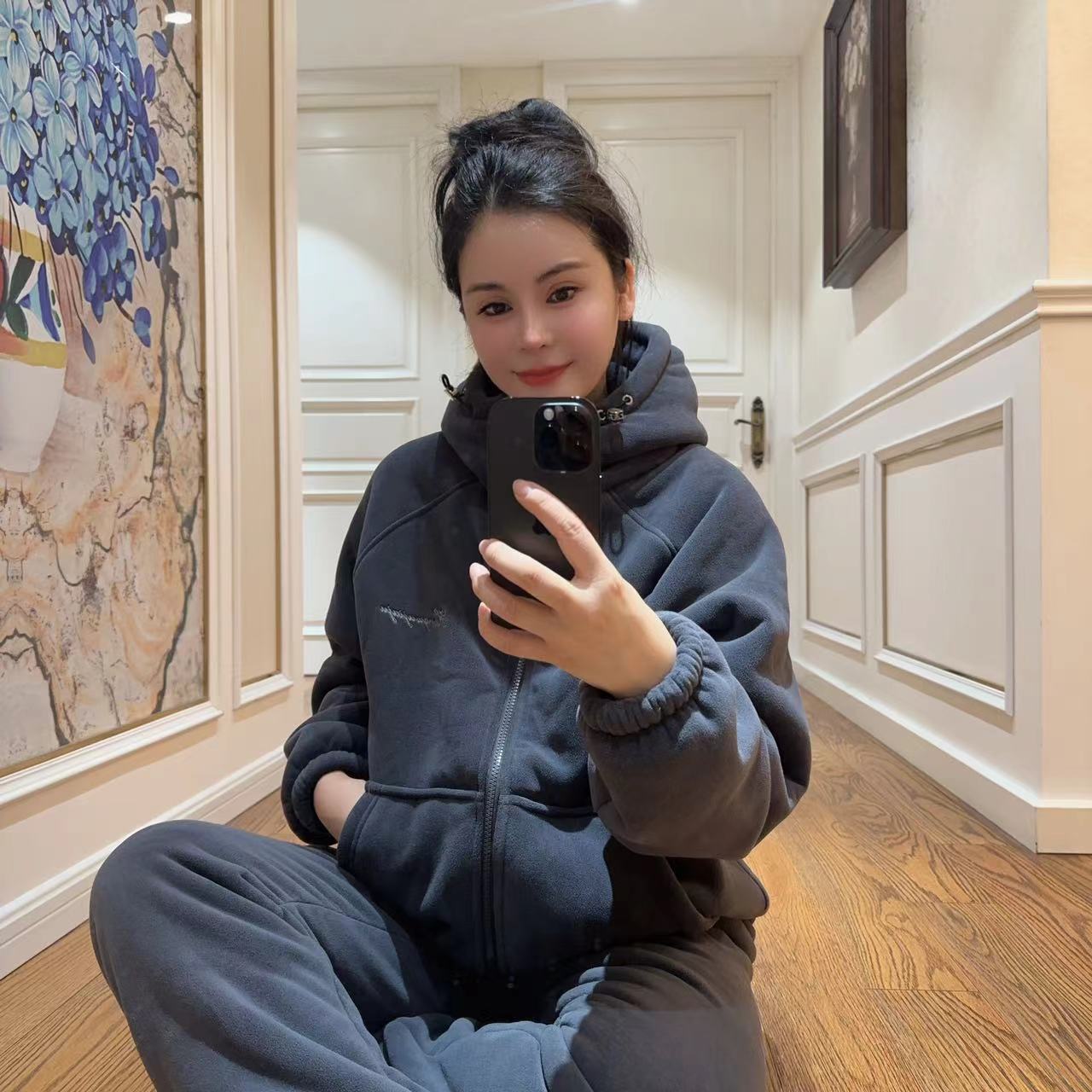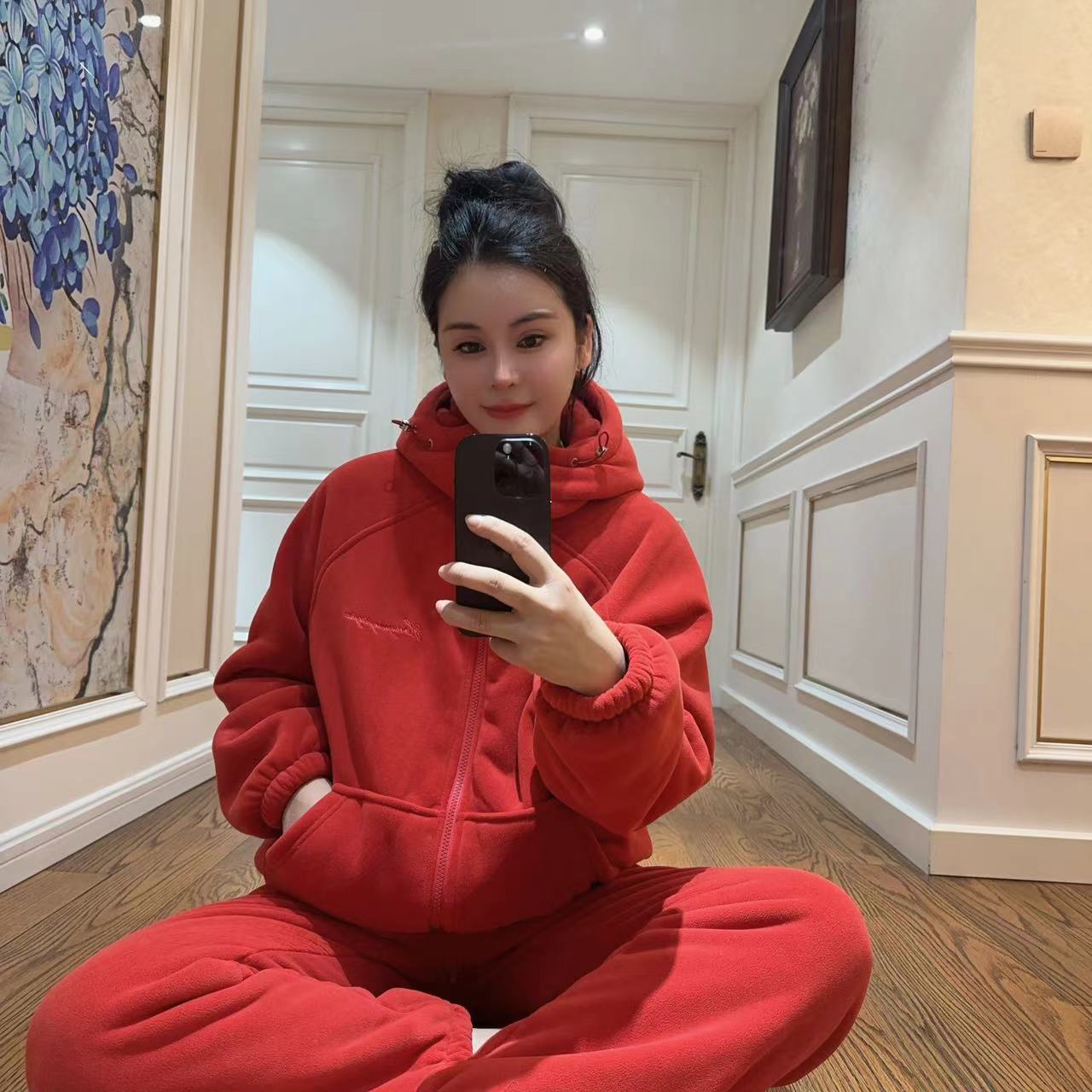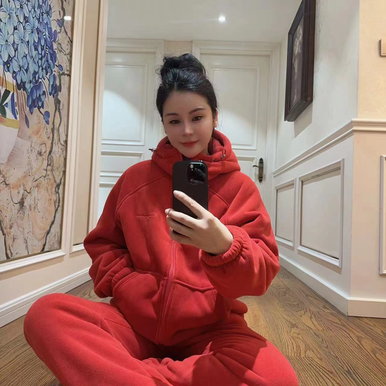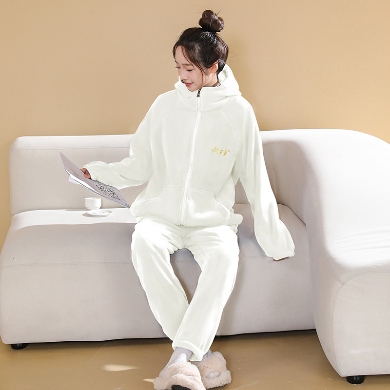 겨울 돌고래 벨벳 여성 따뜻한 후드 플러스 벨벳 두꺼운 올리 벨벳 캐주얼 루즈 웨어러블 홈웨어 슈트