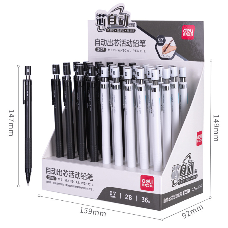 특별 제공 델리 S406/S407 자동 연필 자동 리드 2B 샤프 펜슬은 코어가 쉽게 깨지지 않습니다. 0.5/.07mm