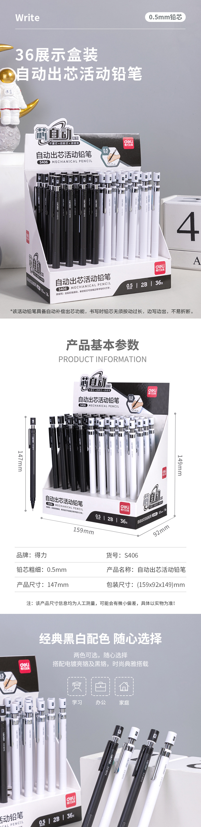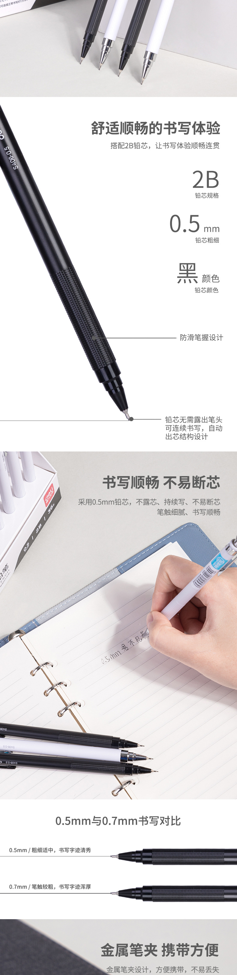 특별 제공 델리 S406/S407 자동 연필 자동 리드 2B 샤프 펜슬은 코어가 쉽게 깨지지 않습니다. 0.5/.07mm스토어 가기