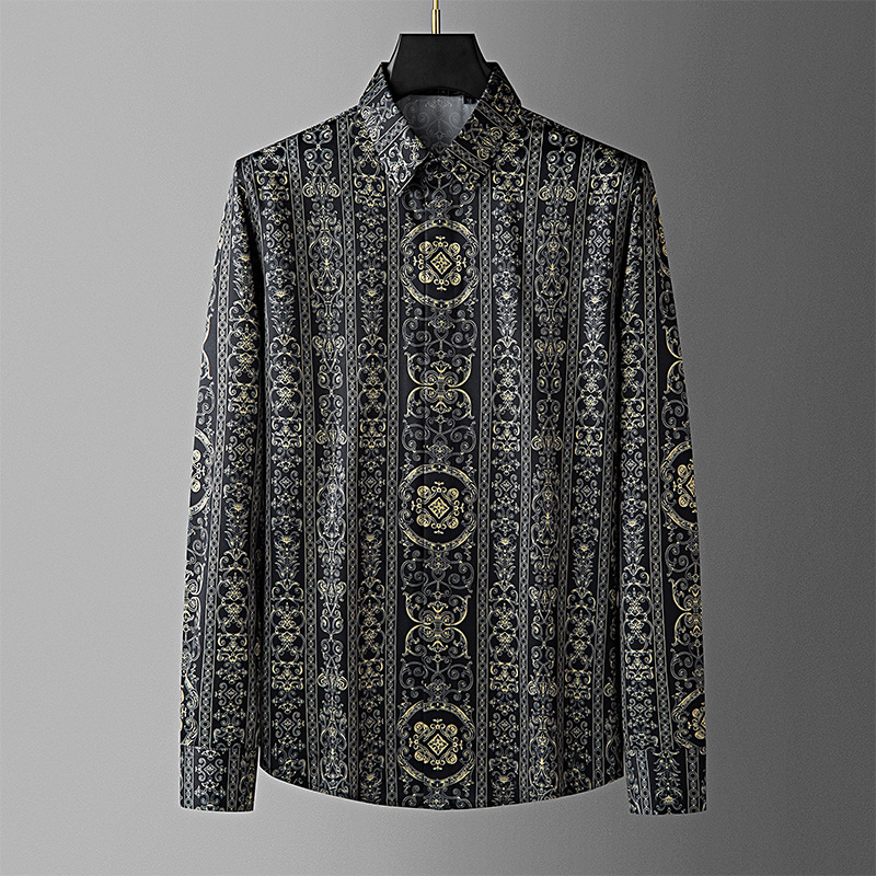하이 엔드 신제품 골든 코트 플라워 프린트 남성용 노 스타일 주름 방지 긴팔 셔츠 세련된 유럽과 미국 스타일의 슬림 셔츠