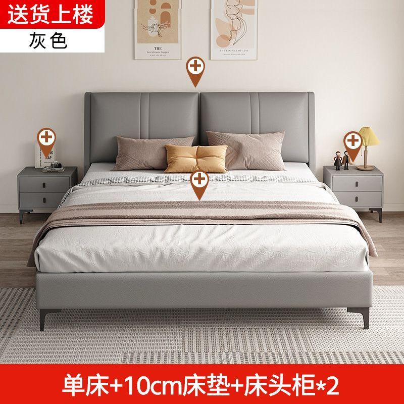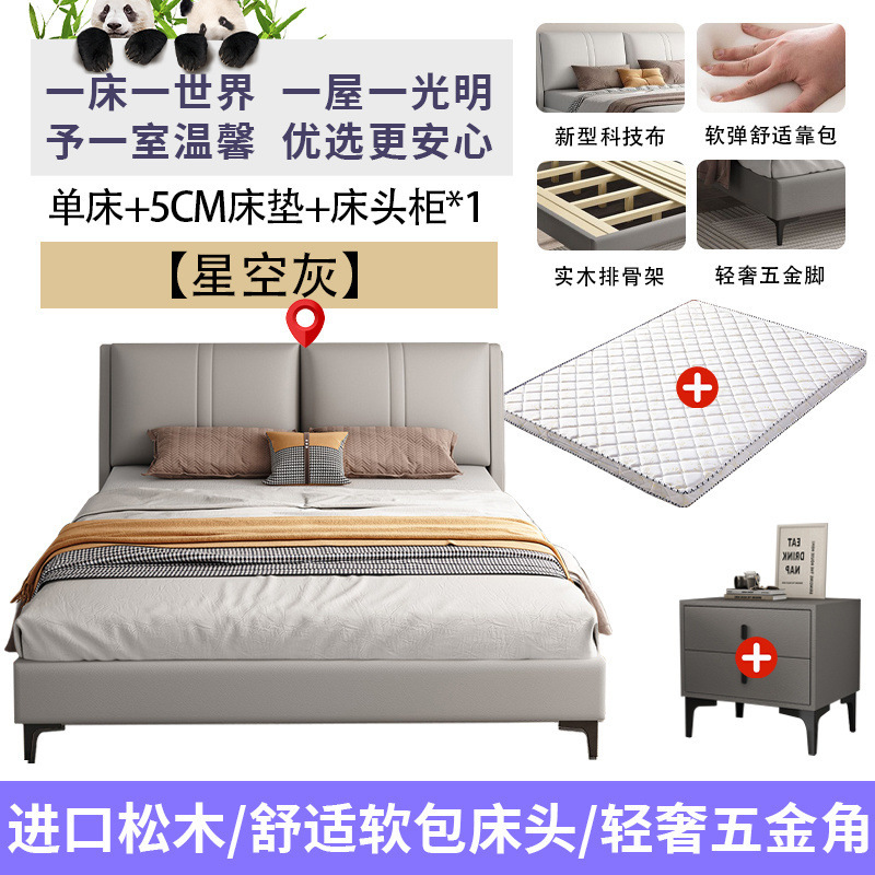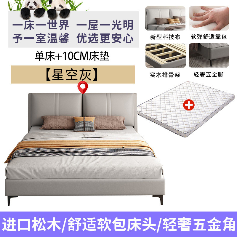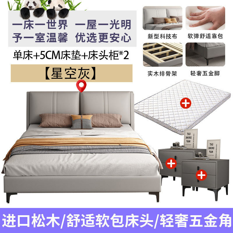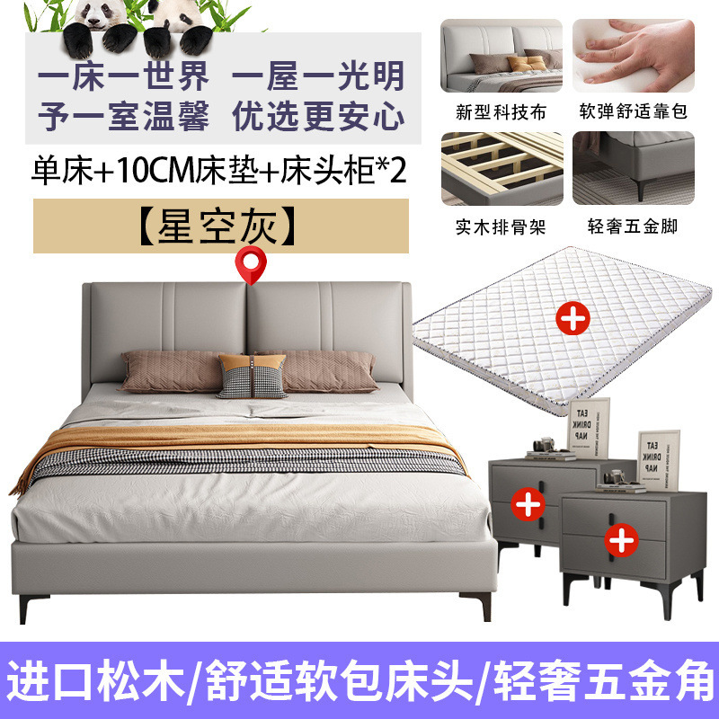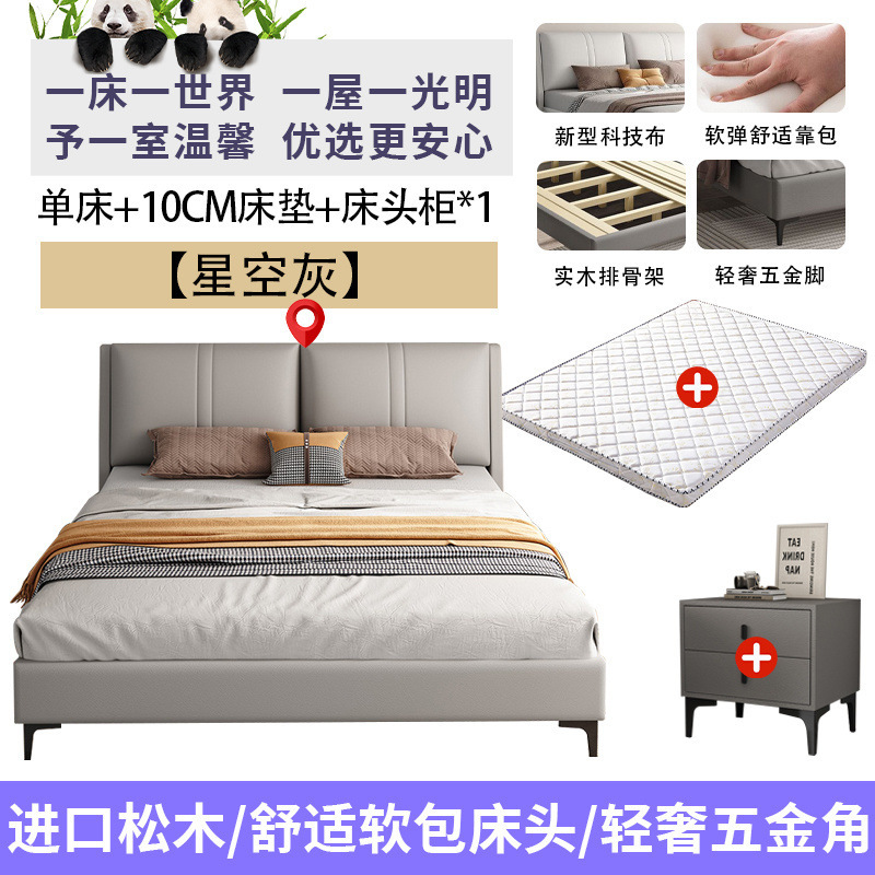 침실 단단한 나무 침대 기술 천 부드러운 등받이 이탈리아 스타일 마스터 침실 경제적 인 싱글 및 더블 침대 부드러운 가방 임대 주택 가정용 침대 공장스토어 가기
