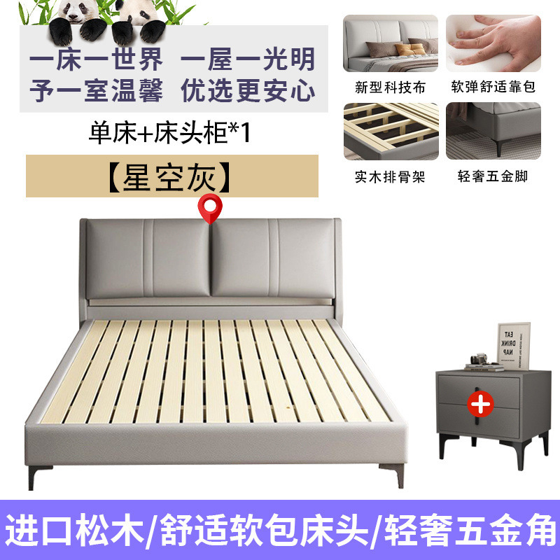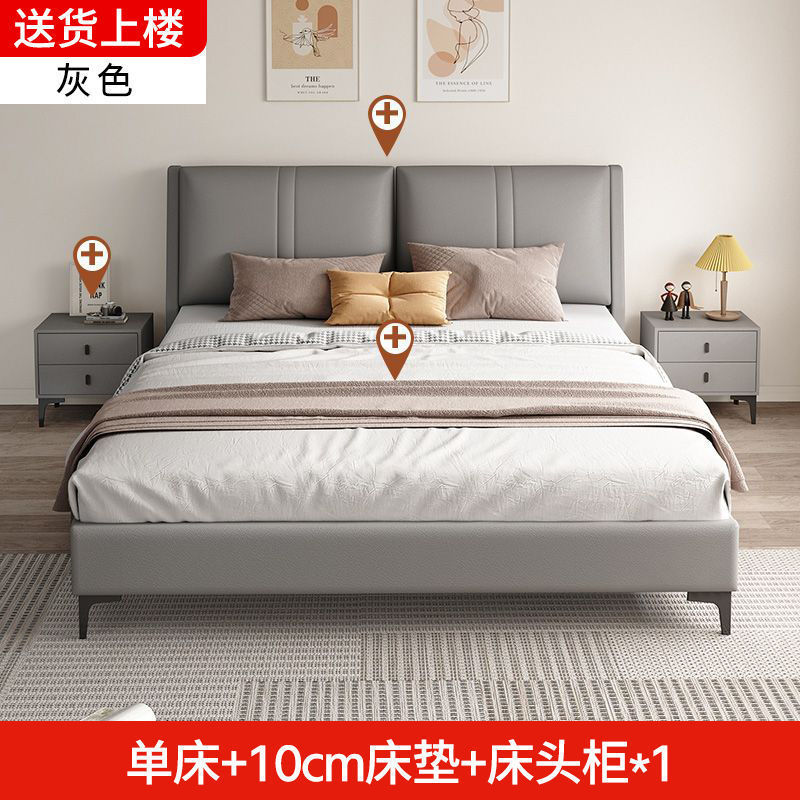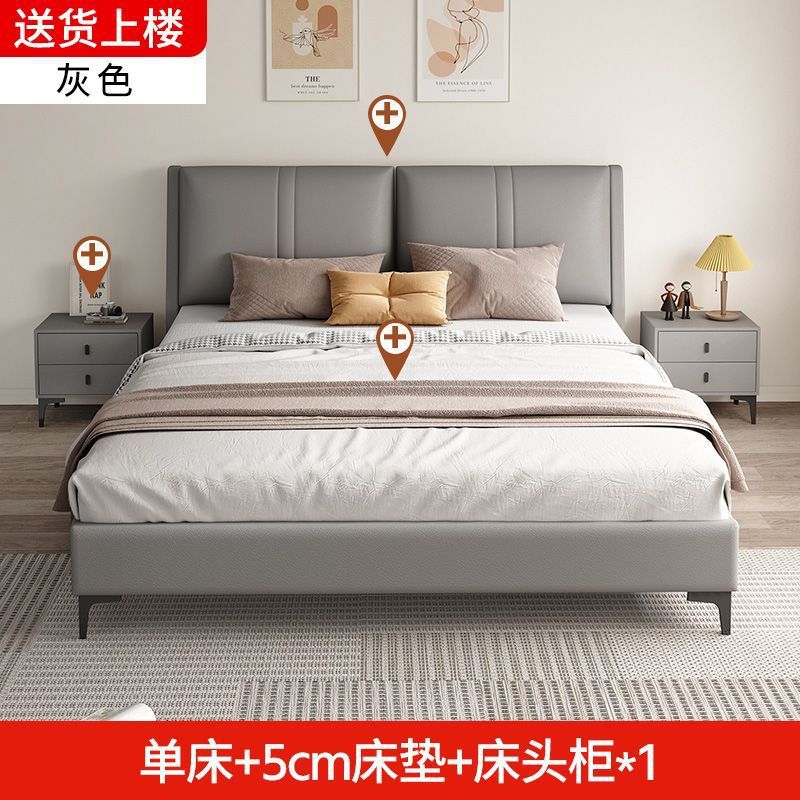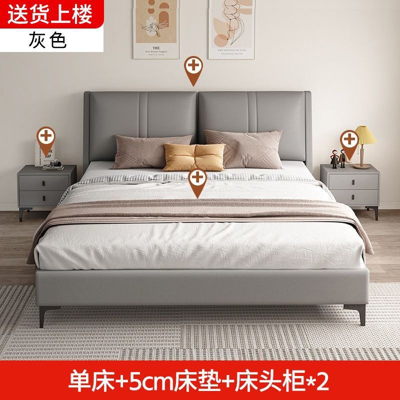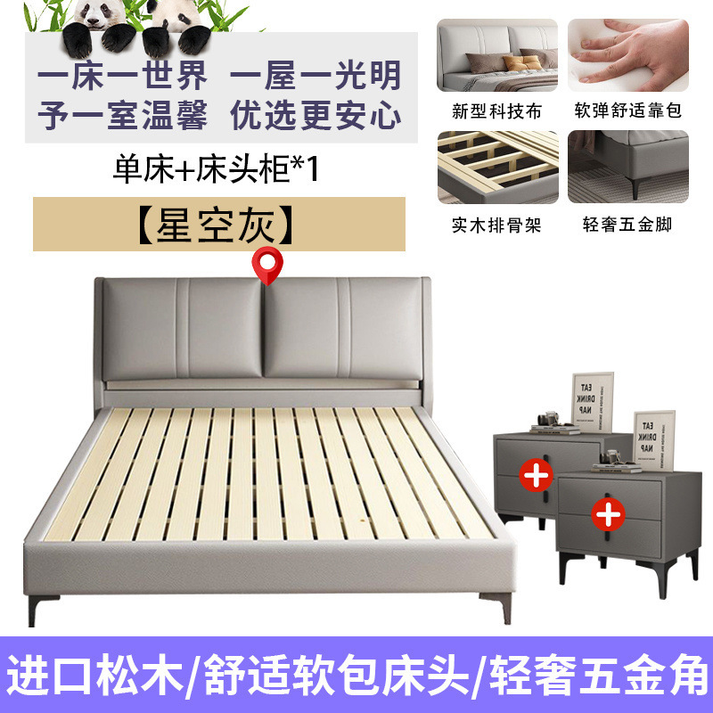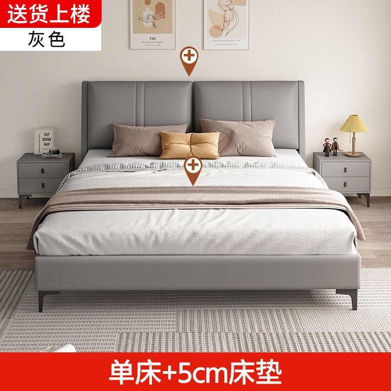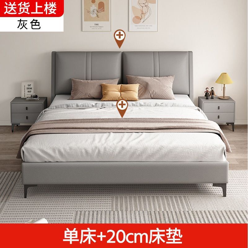 침실 단단한 나무 침대 기술 천 부드러운 등받이 이탈리아 스타일 마스터 침실 경제적 인 싱글 및 더블 침대 부드러운 가방 임대 주택 가정용 침대 공장스토어 가기