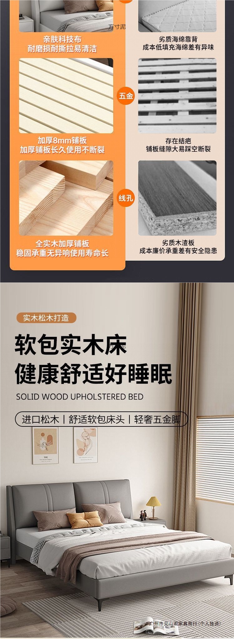 침실 단단한 나무 침대 기술 천 부드러운 등받이 이탈리아 스타일 마스터 침실 경제적 인 싱글 및 더블 침대 부드러운 가방 임대 주택 가정용 침대 공장