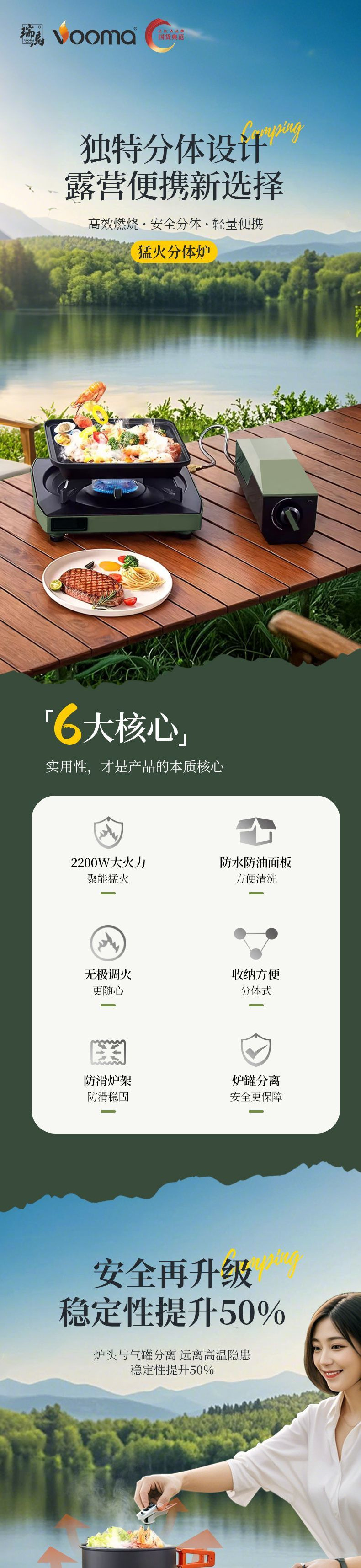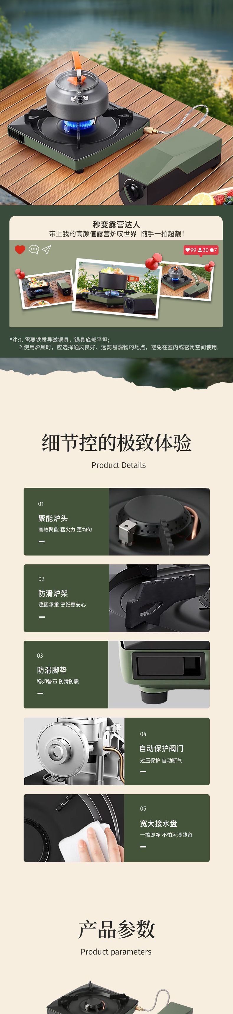 카세트 스토브, 야외 스토브, 휴대용 가스 스토브, 캠핑 및 피크닉 장비, 야외 분할 차 스토브 풀 세트스토어 가기