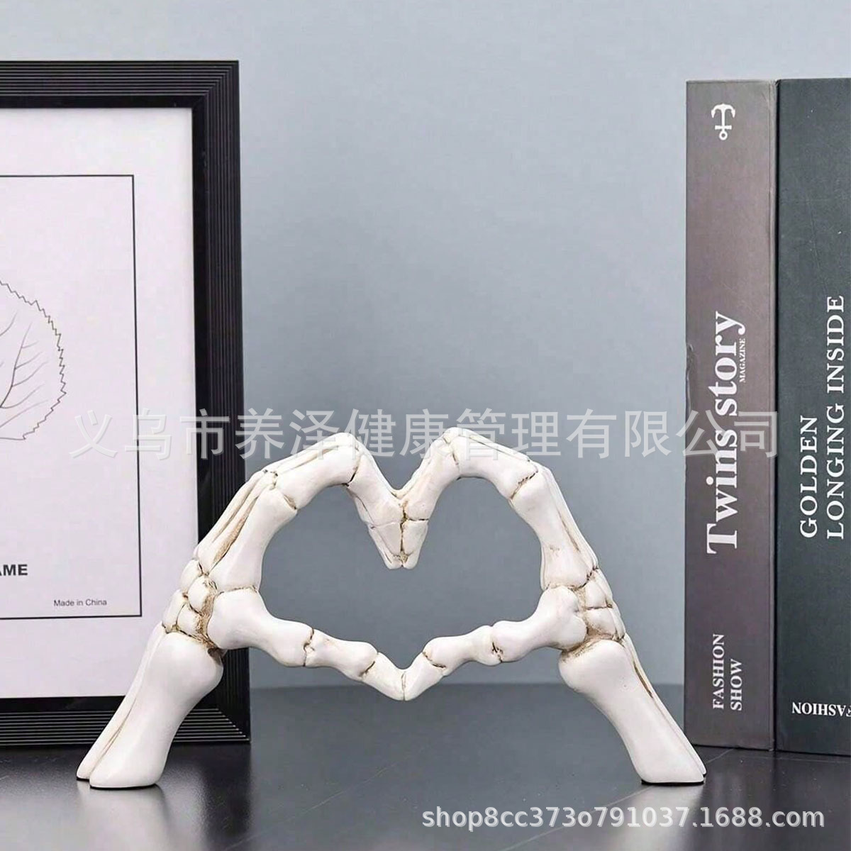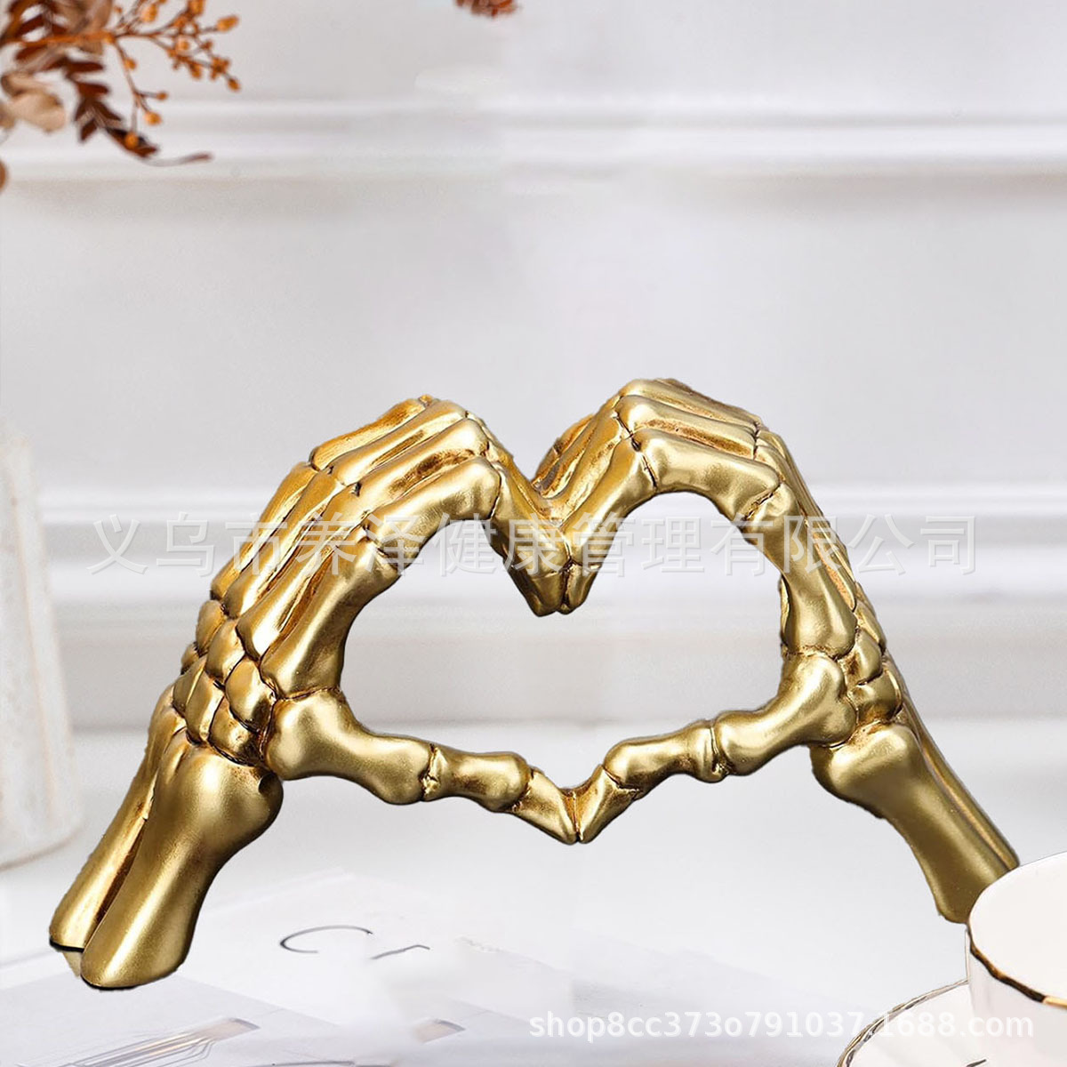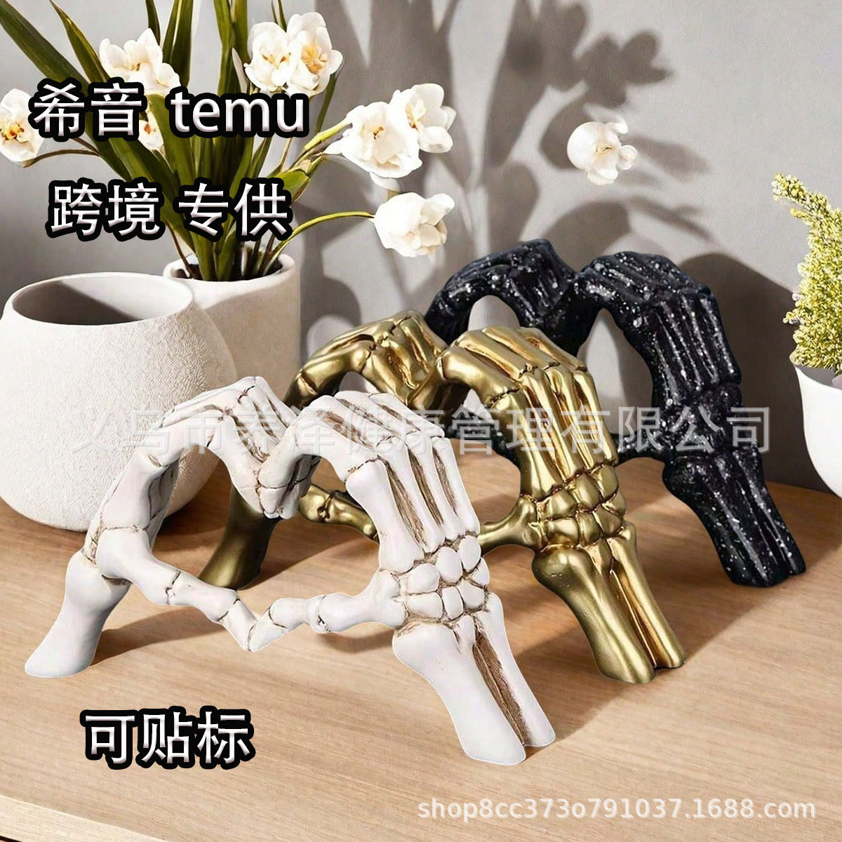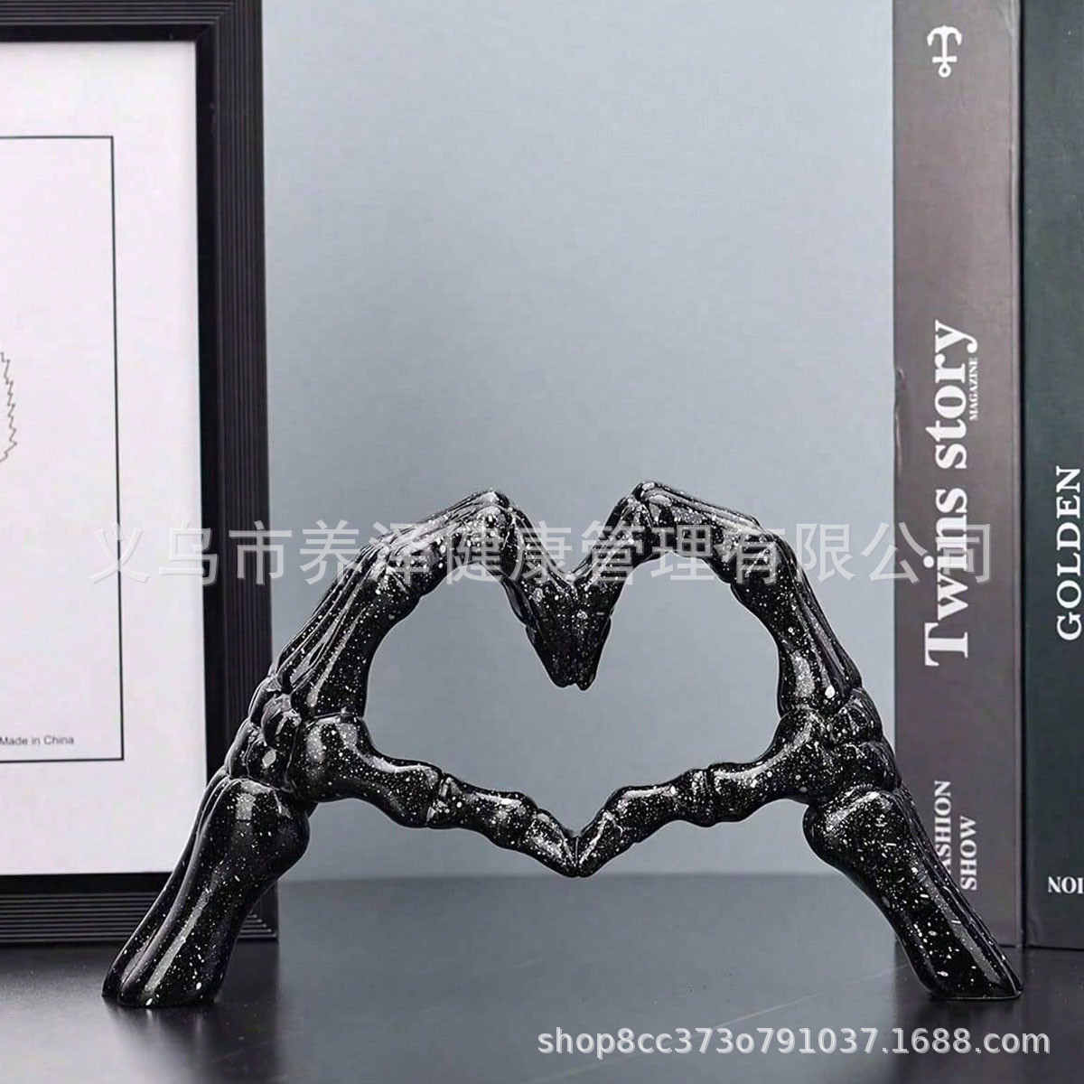 국경 간 할로윈 하트 제스처 해골 장식품 수지 공예 사랑 홈 침실 데스크탑 장식 선물