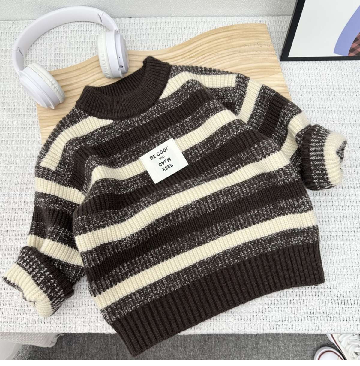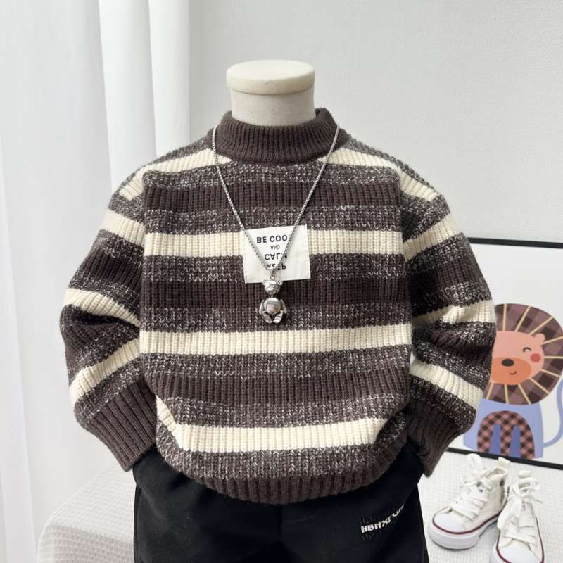 새로운 두꺼운 어린이 줄무늬 라운드 넥 스웨터 소년 따뜻한 스웨터 어린이 가을, 겨울 스웨터 소년 스웨터