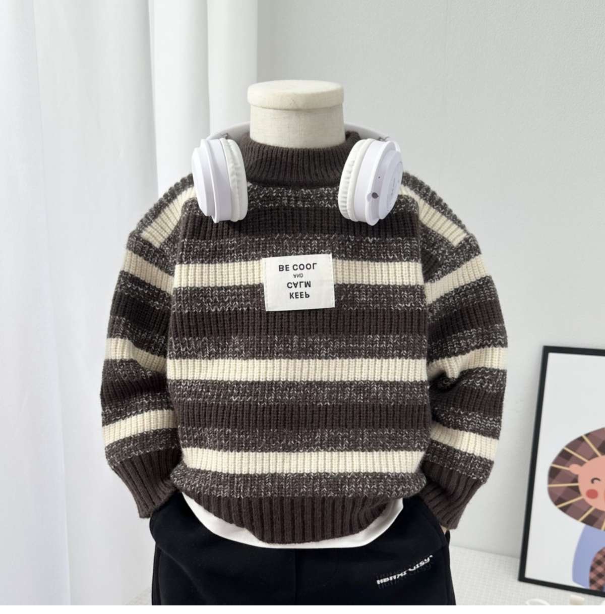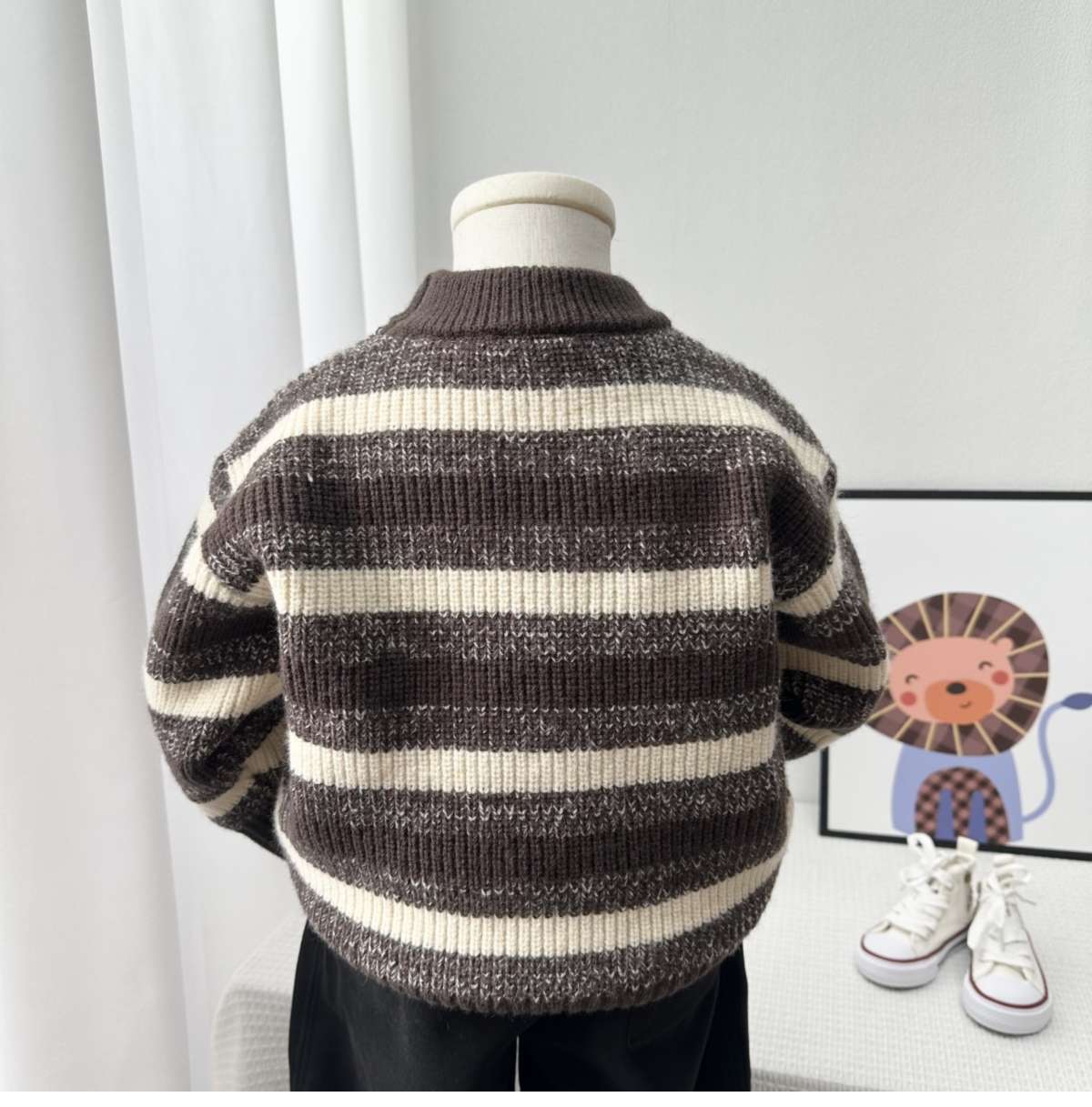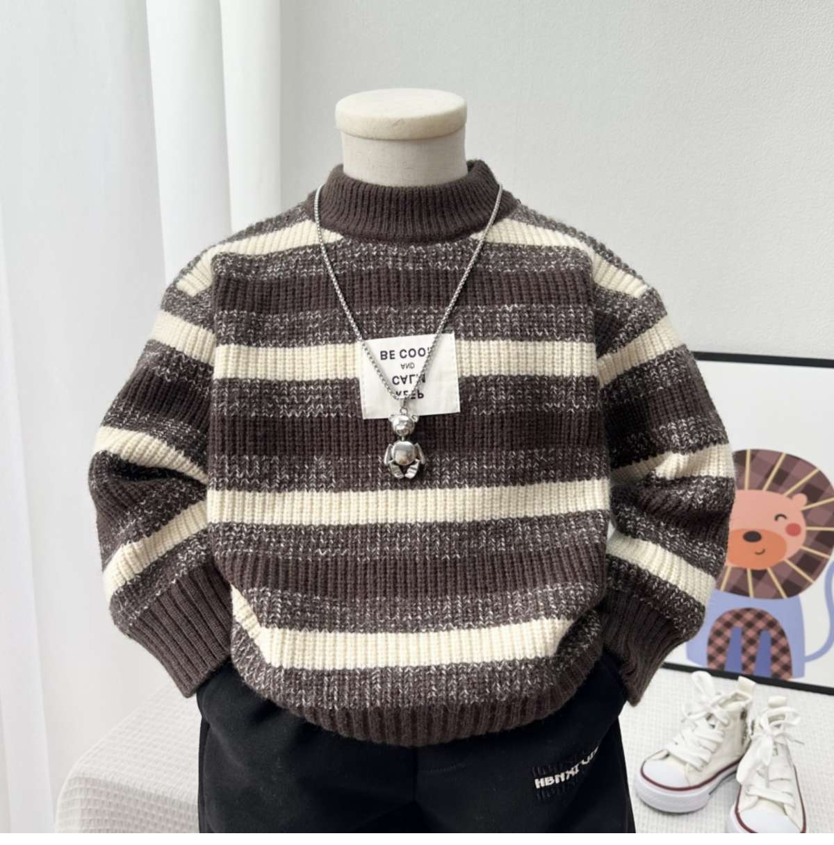 새로운 두꺼운 어린이 줄무늬 라운드 넥 스웨터 소년 따뜻한 스웨터 어린이 가을, 겨울 스웨터 소년 스웨터스토어 가기