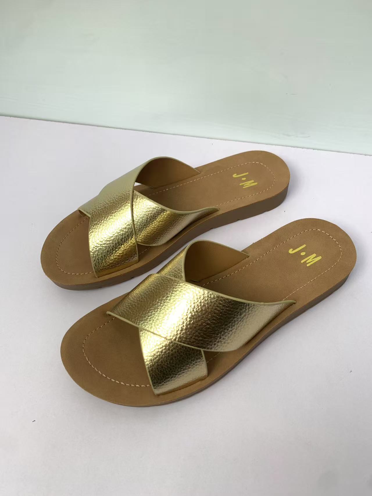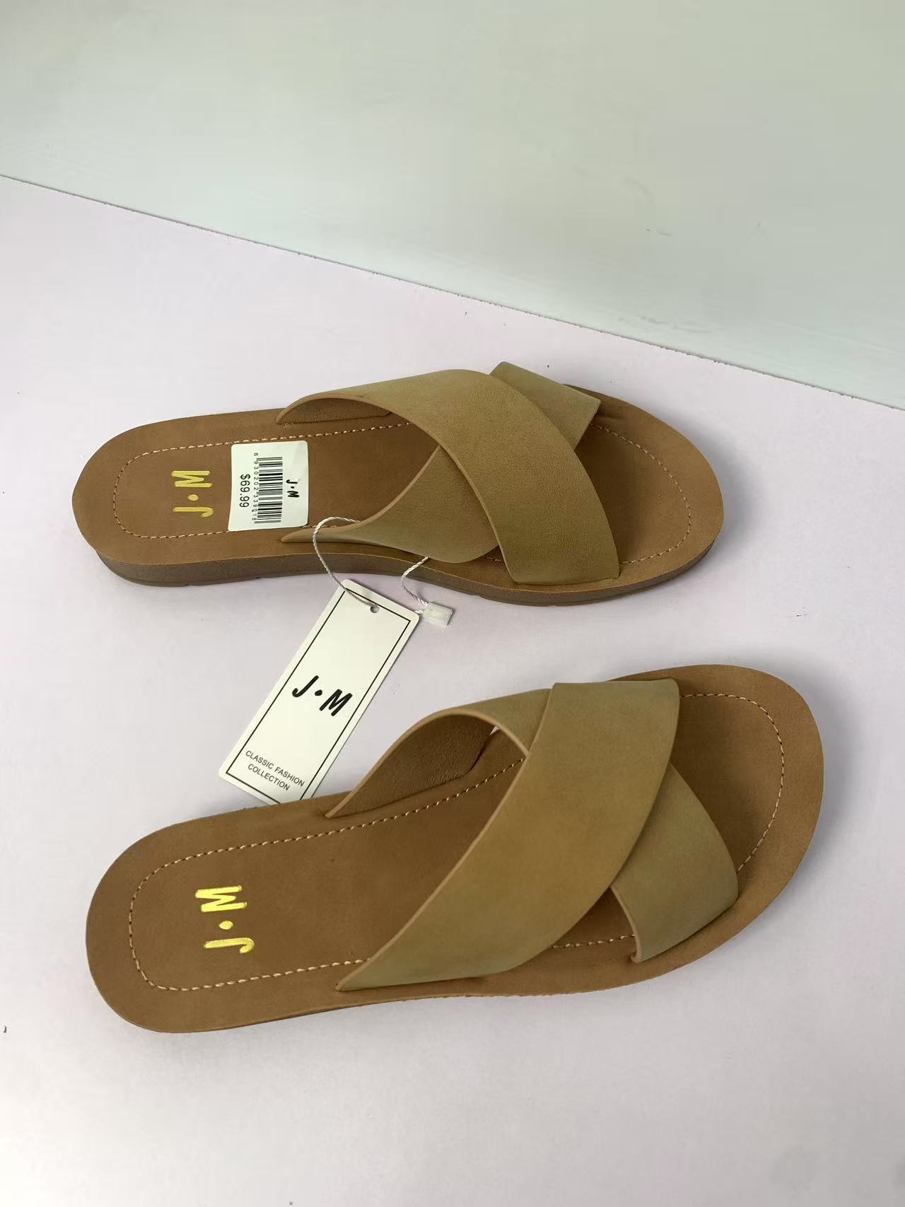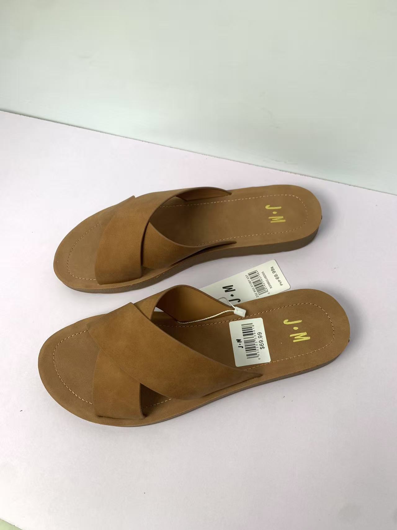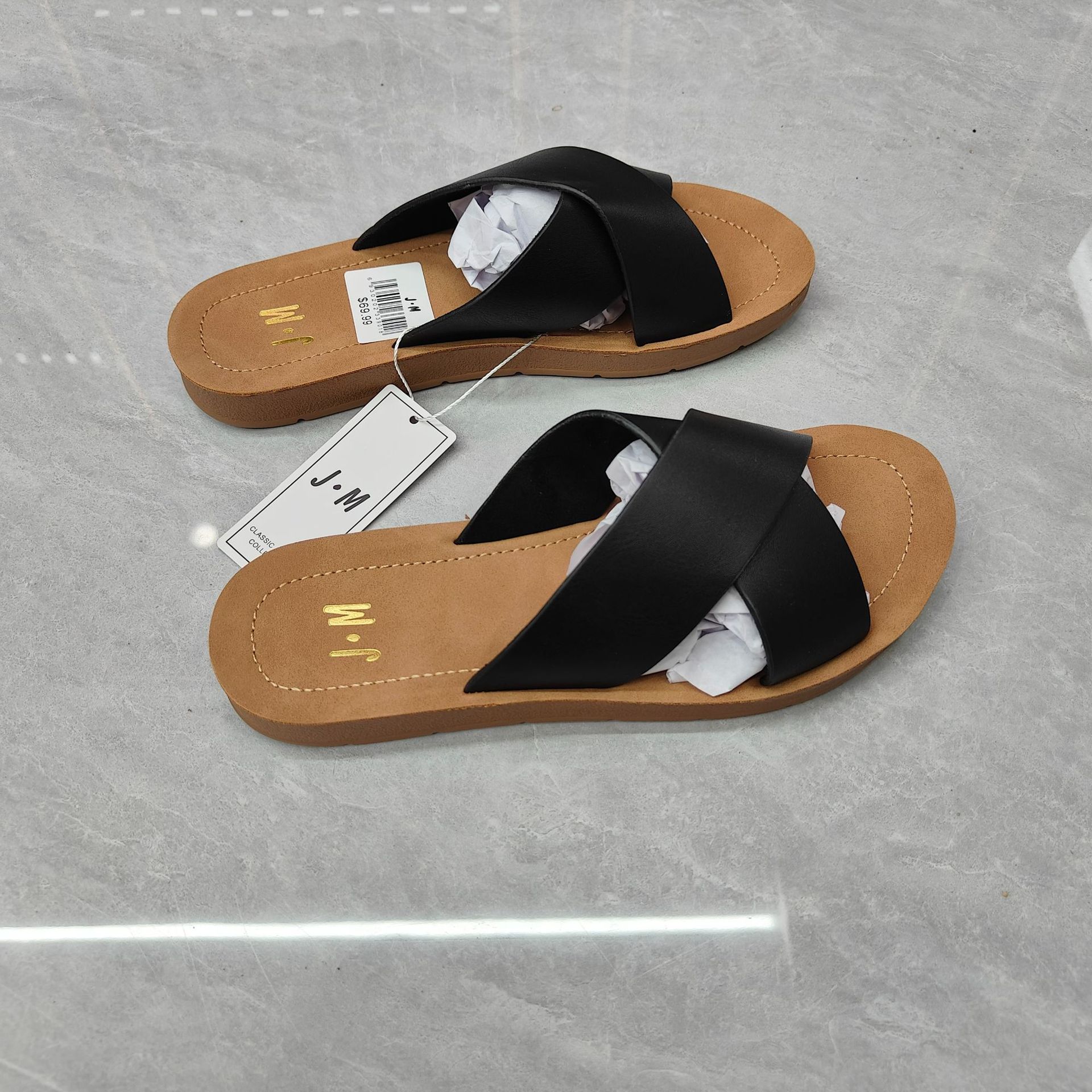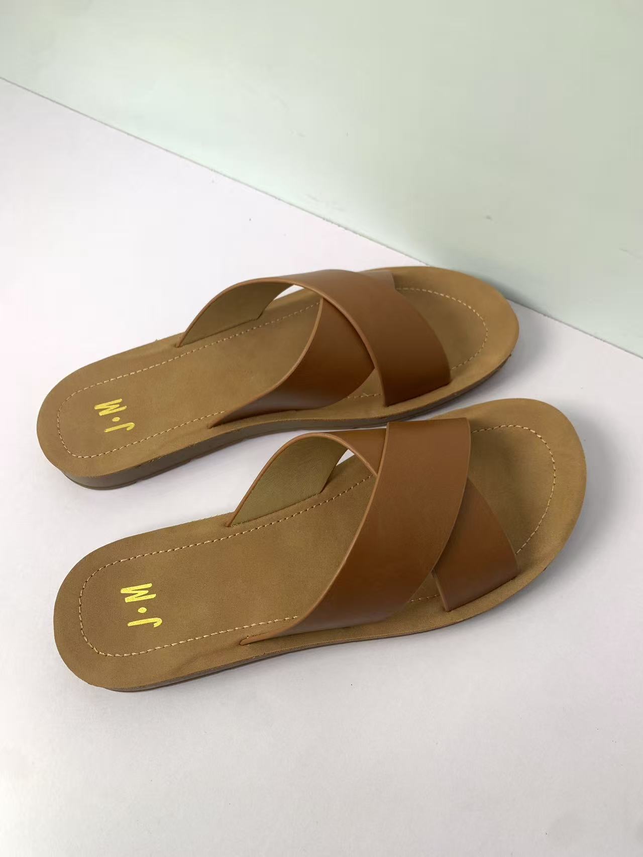 대외 무역용 대형 사이즈 여름 크로스 스트랩 디자인 심플 스타일 플랫 슬리퍼 여성용 데일리 만능 슬리퍼