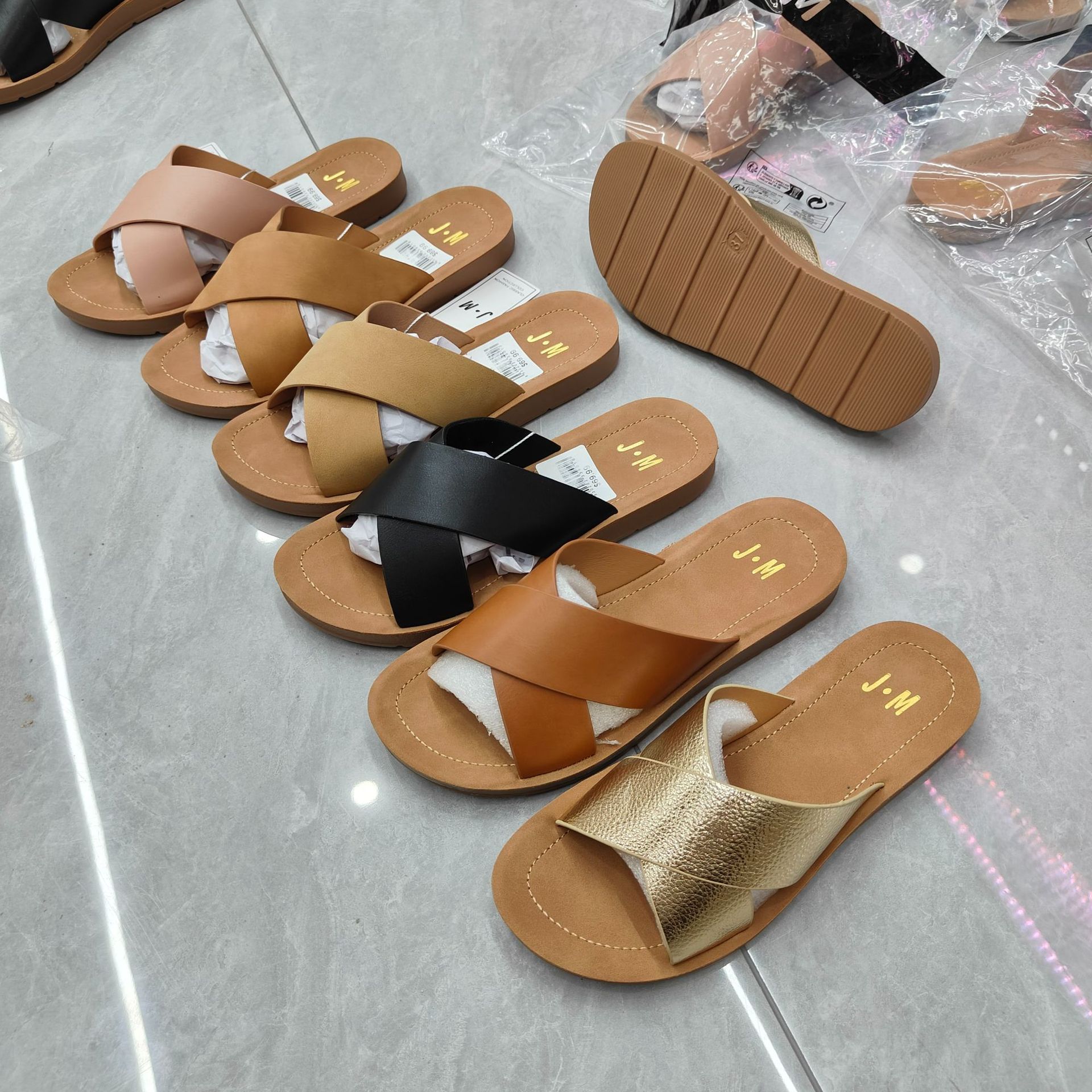 대외 무역용 대형 사이즈 여름 크로스 스트랩 디자인 심플 스타일 플랫 슬리퍼 여성용 데일리 만능 슬리퍼스토어 가기