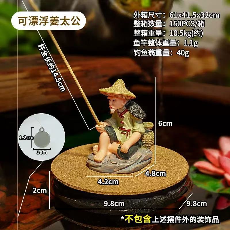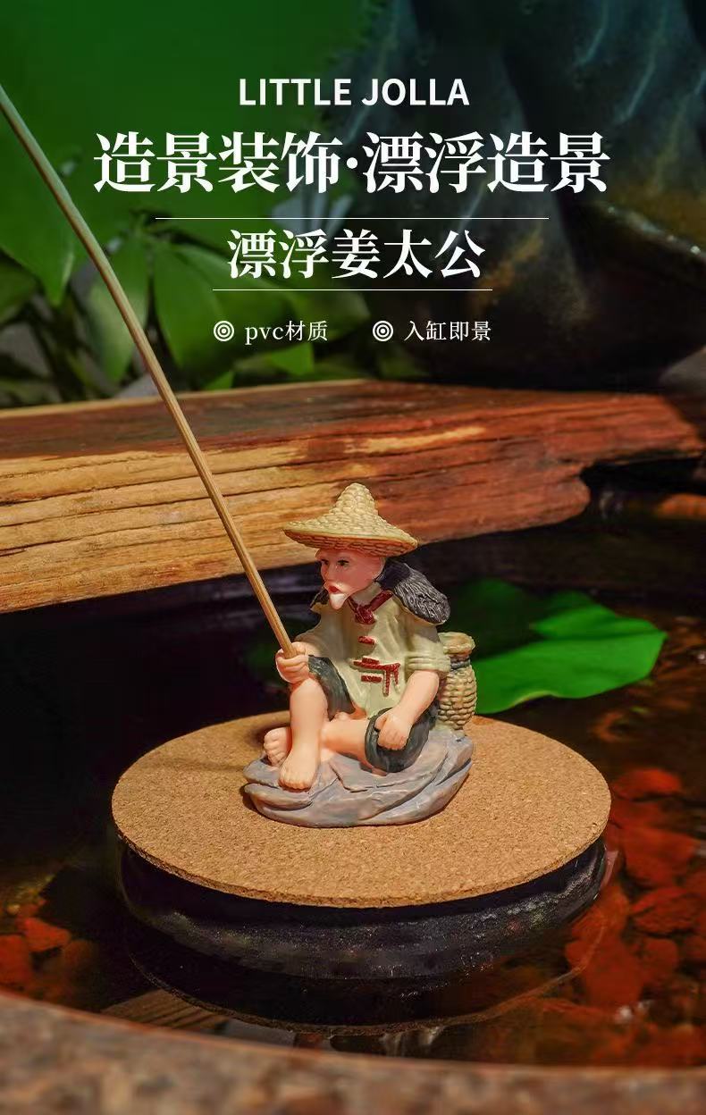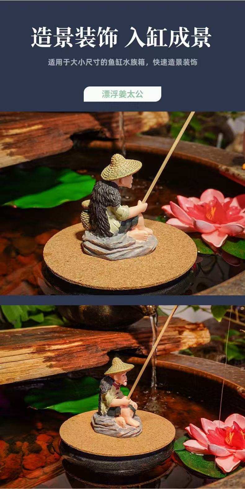 물고기 탱크 물 장식품 낚시 노인 조경 부동 낚시꾼 낚시 부동 장식품 Jiang Taigong 낚시 장식품스토어 가기