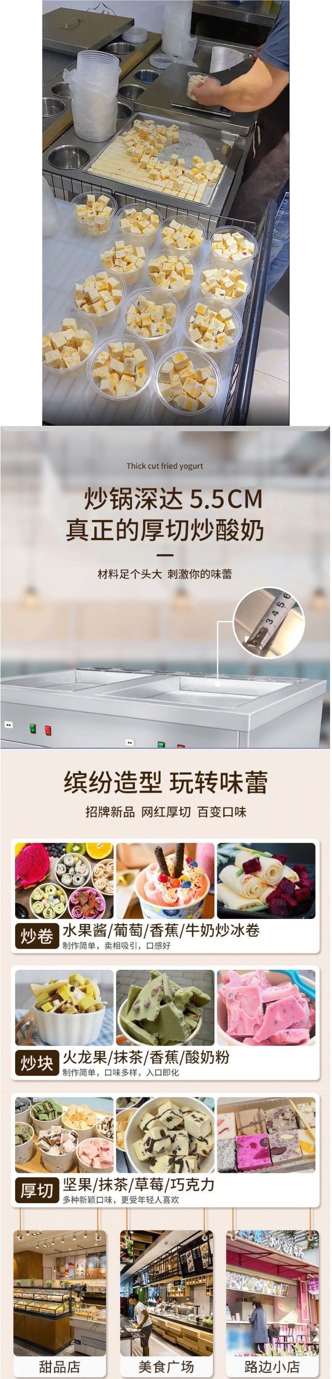 두껍게 썬 요거트 기계, 상업용 깊은 냄비, 인터넷 연예인 아이스 크림 기계, 롤 기계, 아이스크림 롤, 과일 요거트 큐브, 눈송이 요구르트스토어 가기
