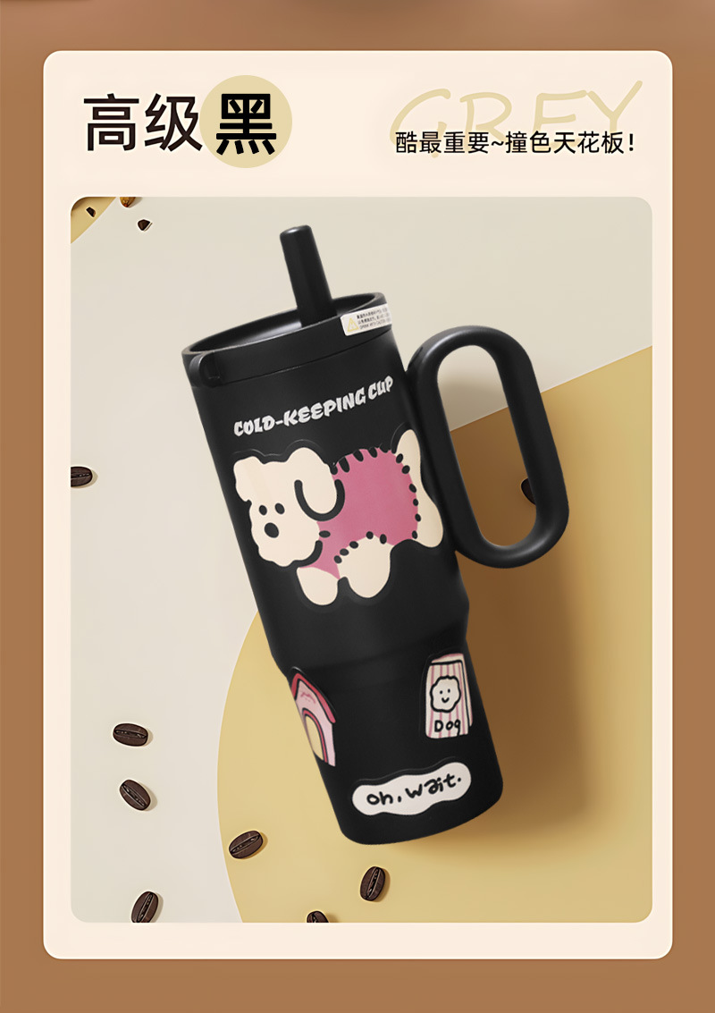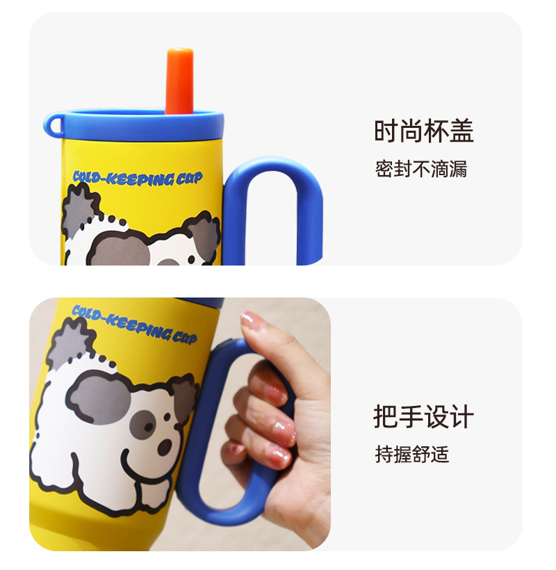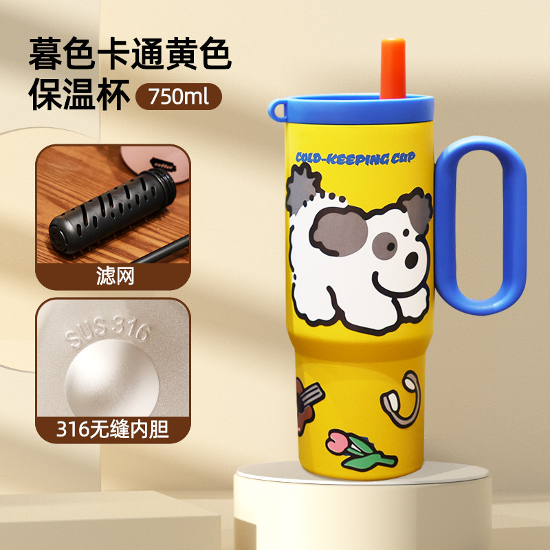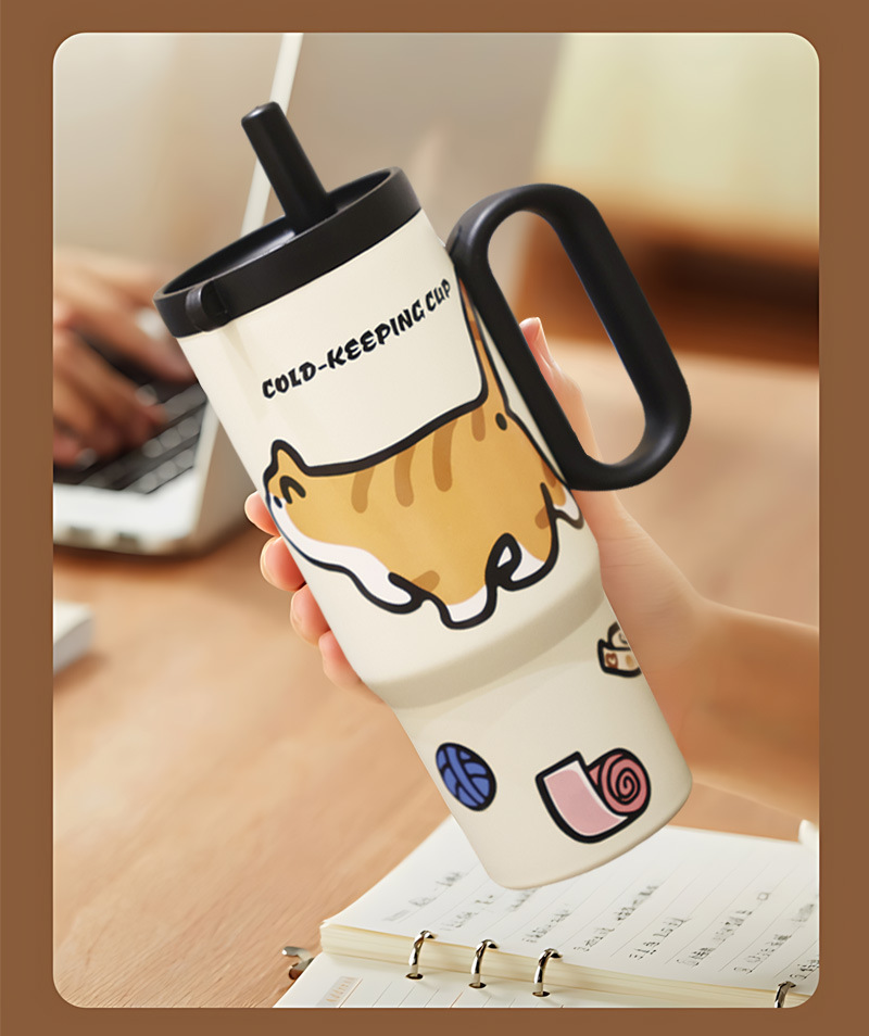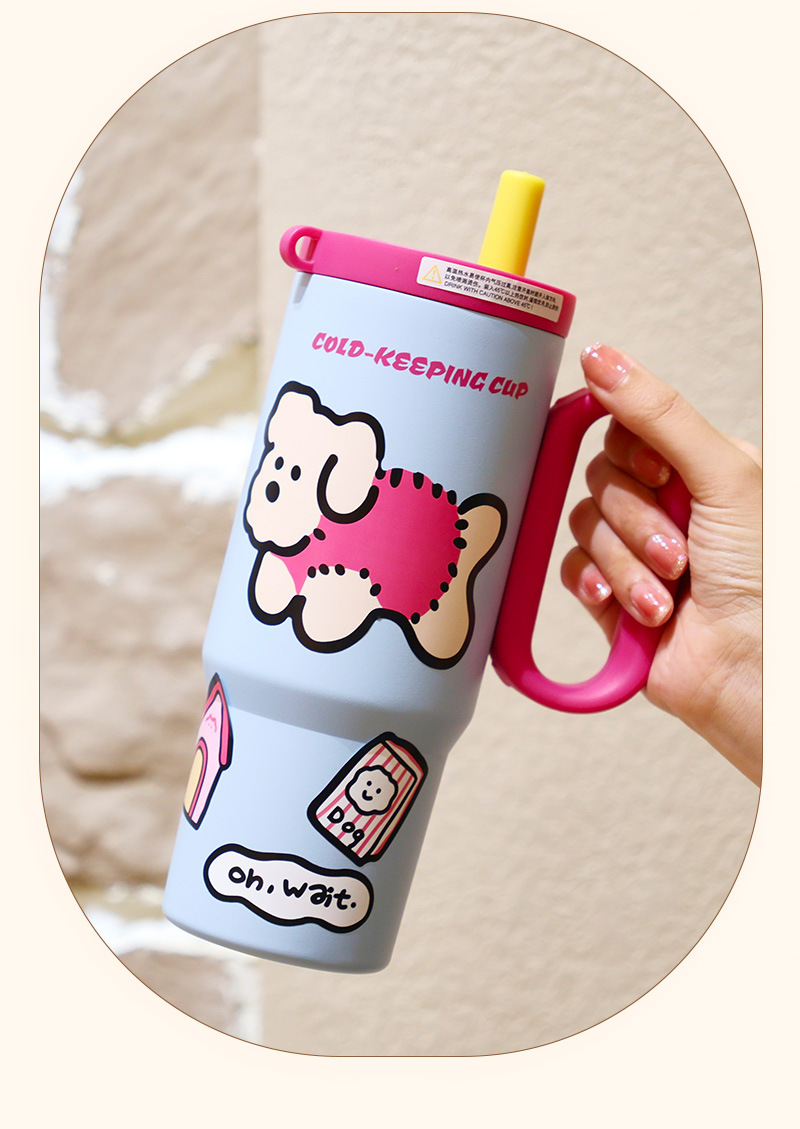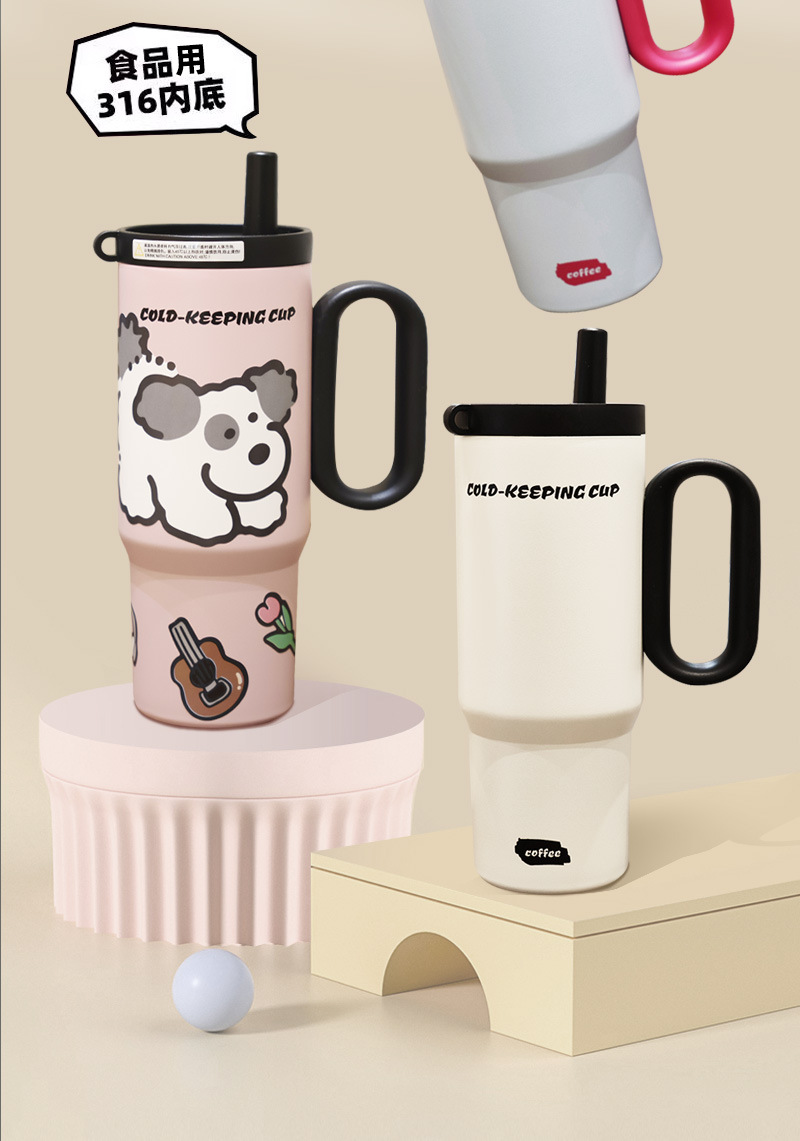 자동차 손잡이 아이스 컵, 빨대가 달린 고급스러운 휴대용 소녀 보온병 컵, 사무실 크로스보더 대용량 물컵