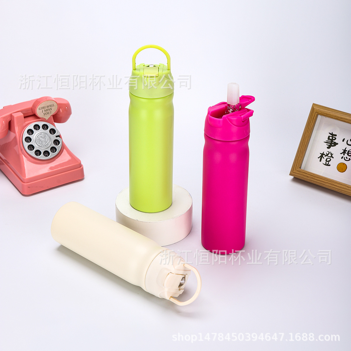 야외 등산 및 사이클링 스포츠 물병 휴대용 휴대용 스트레이트 컵(빨대 포함)을 위한 간단한 304 스테인레스 스틸 절연 컵스토어 가기