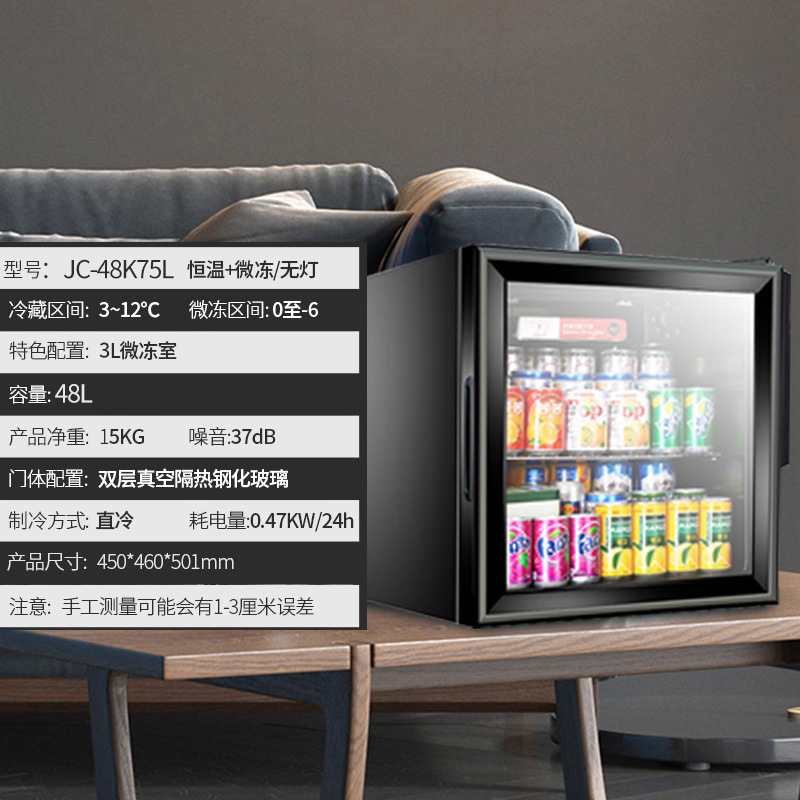 오크스 아이스 바 소형 단일 도어 소형 냉장고 홈 오피스 투명 음료 레드 와인 차 냉장 보존 캐비닛