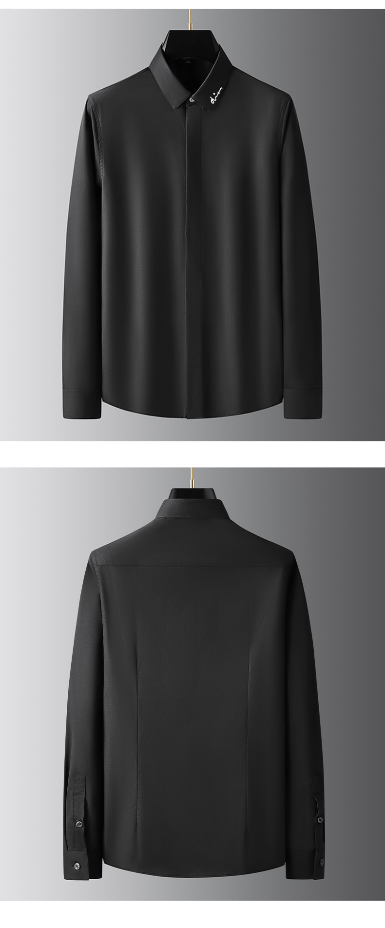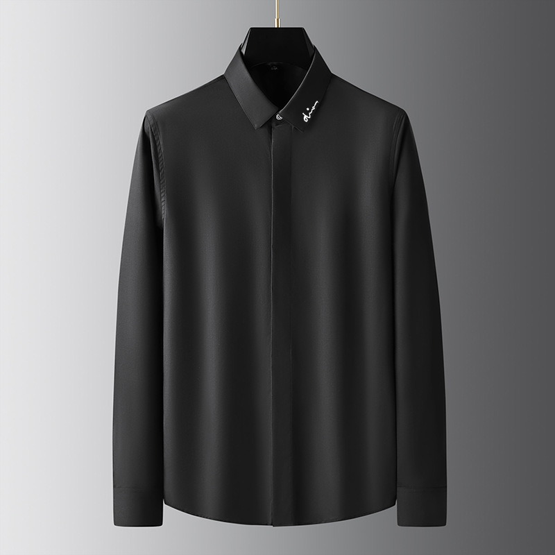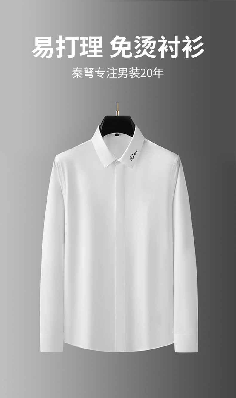 트렌디한 라이트 럭셔리 및 하이엔드 새로운 스타일의 노아이론 하이엔드 남성용 긴팔 셔츠, 작은 시그니처 자수, 다용도 퓨어 화이트 남성 셔츠스토어 가기