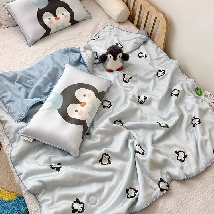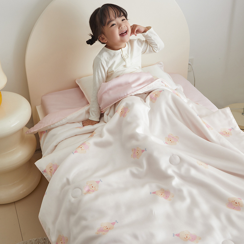 100% 텐셀 여름 시원한 이불, 어린이 에어컨 이불, 얇은 이불, 여름 이불 풀세트, 4종 세트, 시원한 얼음 실크 이불