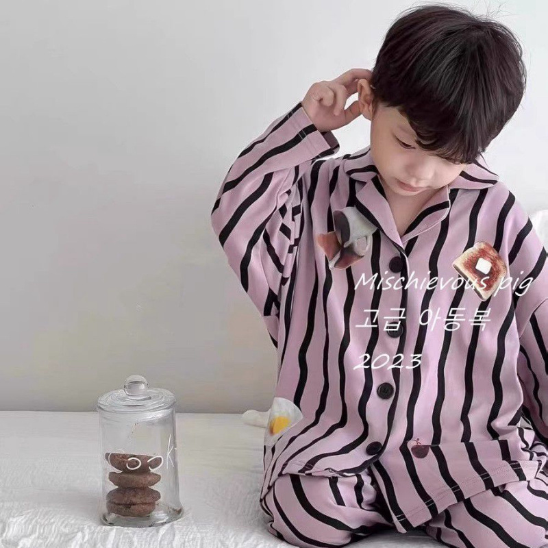 파자마 한국 어린이 소년 소녀 새로운 2023 봄, 가을 긴팔 가정복 세트 메일라드 투피스 세트스토어 가기