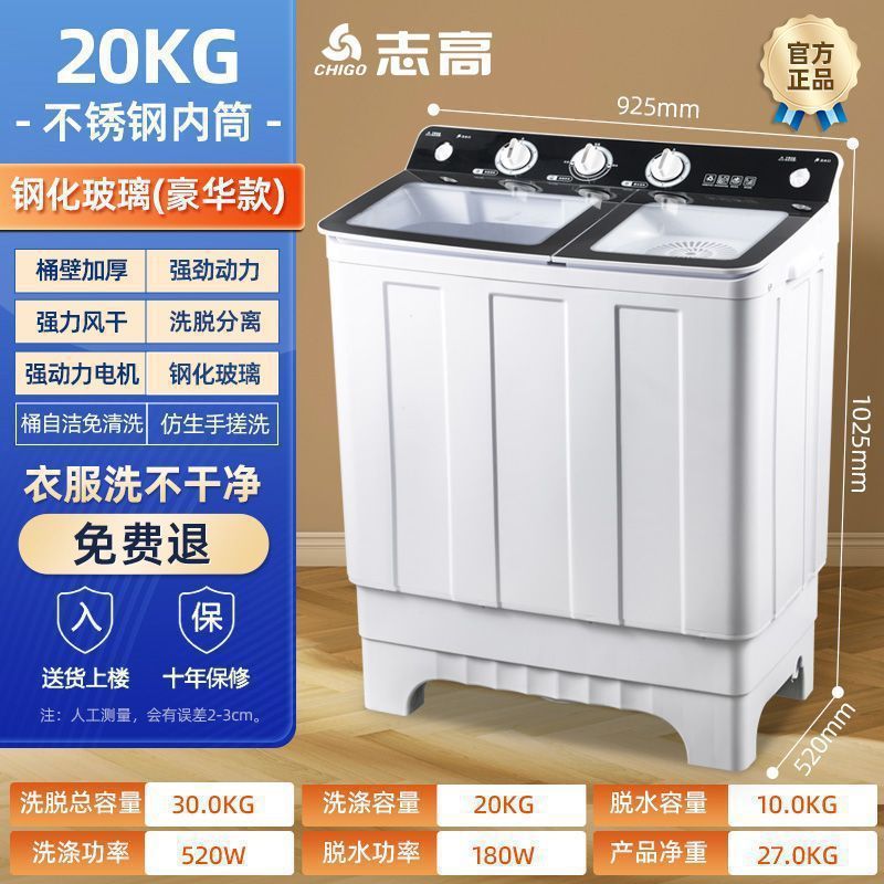 Chigo 반자동 세탁기 대용량 가정용 이중 실린더 이중 통 구식 펄스 휠 Xincheng 이중 실린더 세탁기스토어 가기