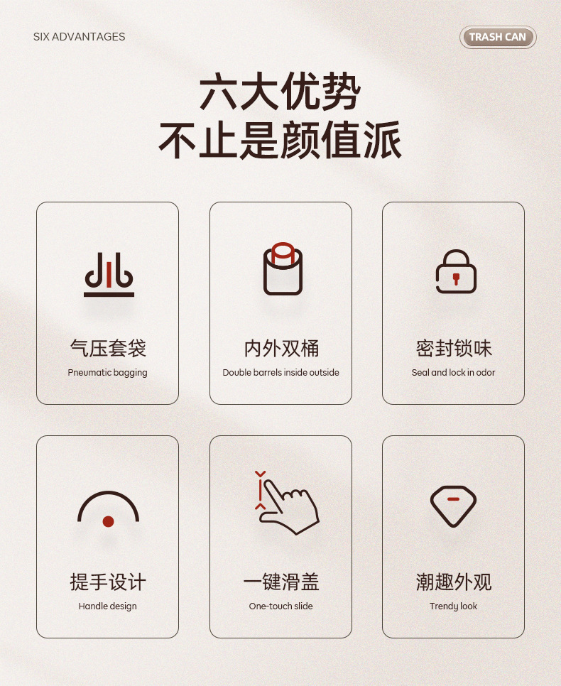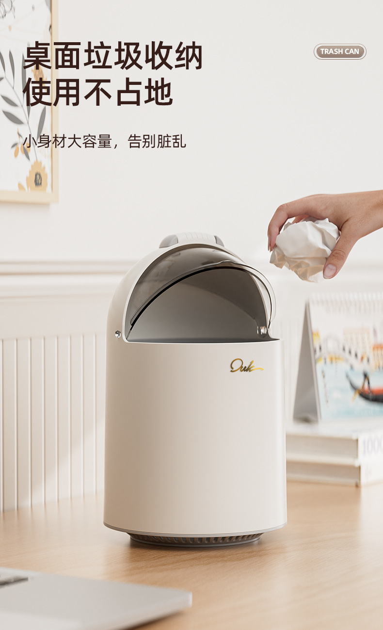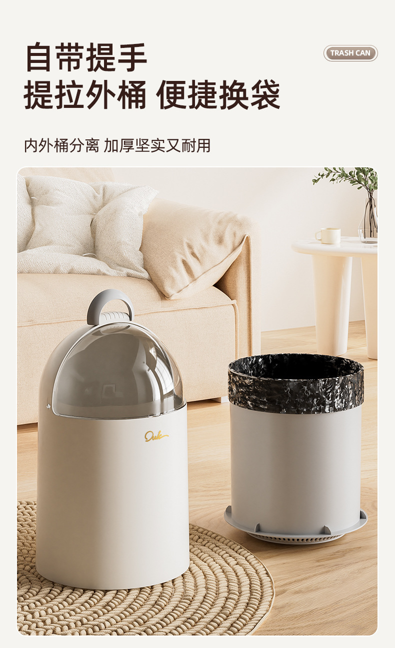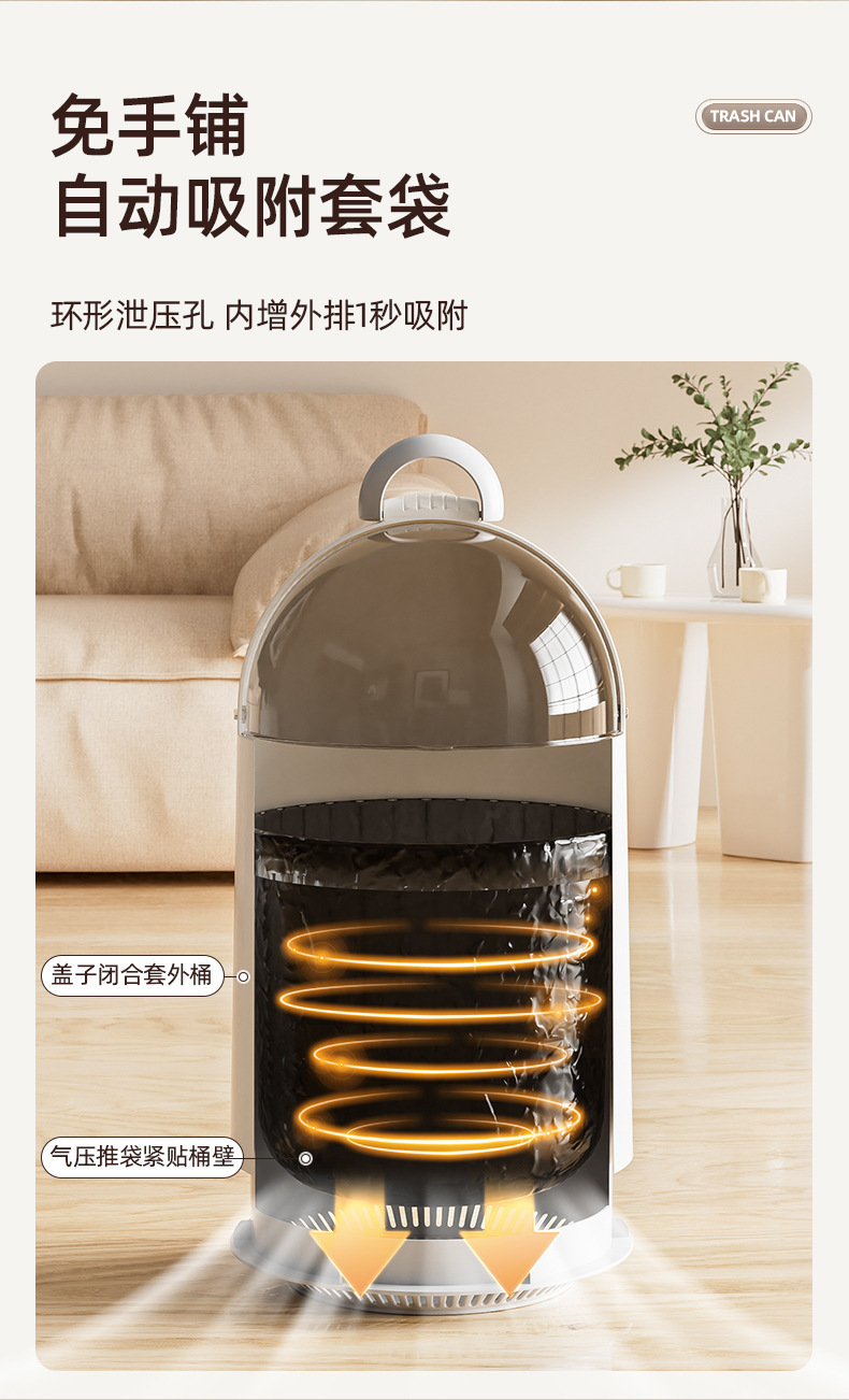 쓰레기통 가정용 화장실 침실 공기압 흡착 주방 쓰레기통 욕실 쓰레기통 작은 진주 흰색