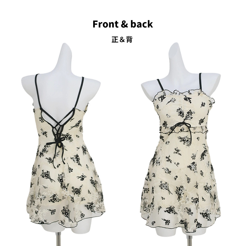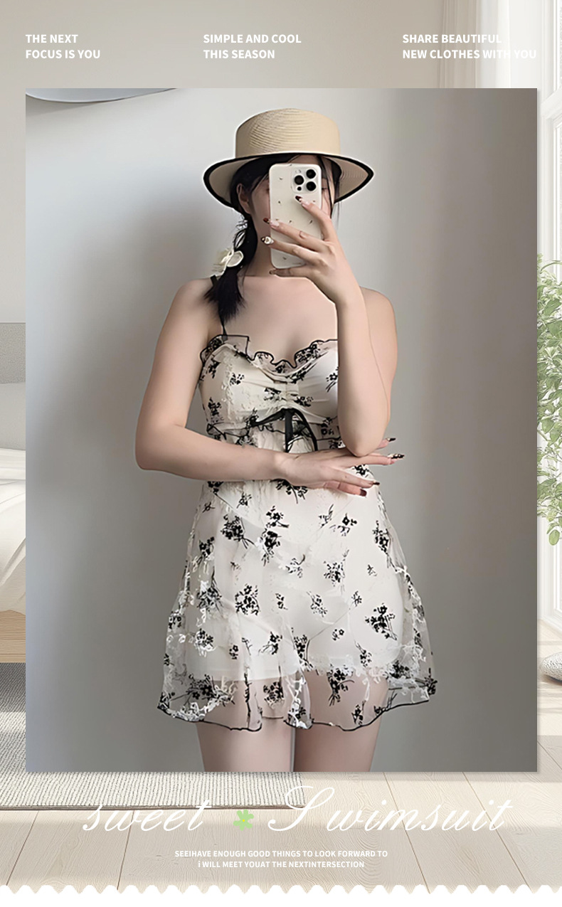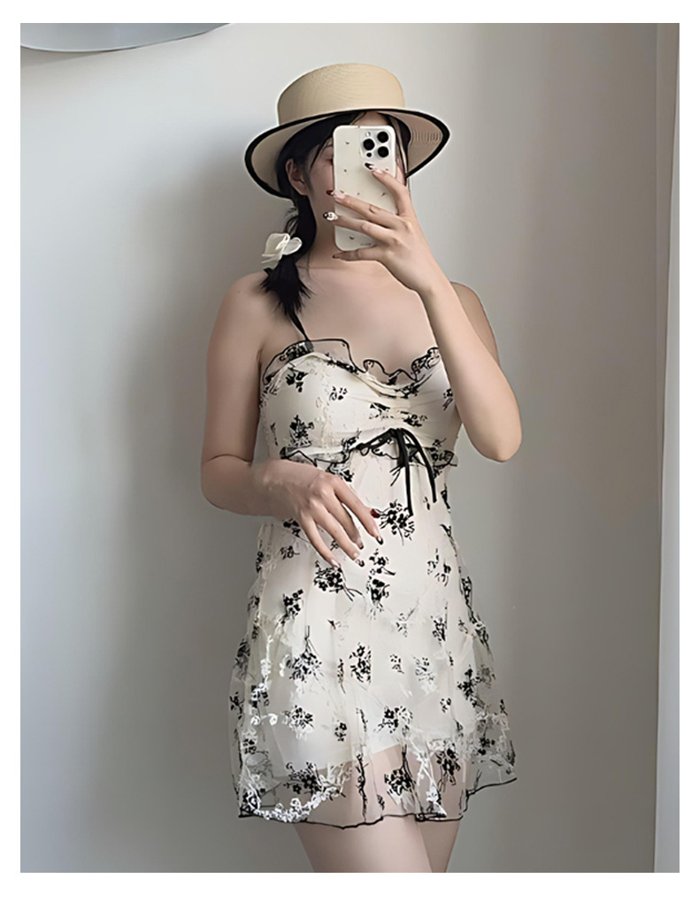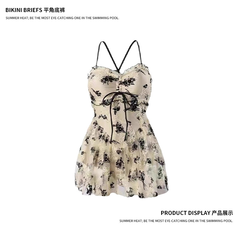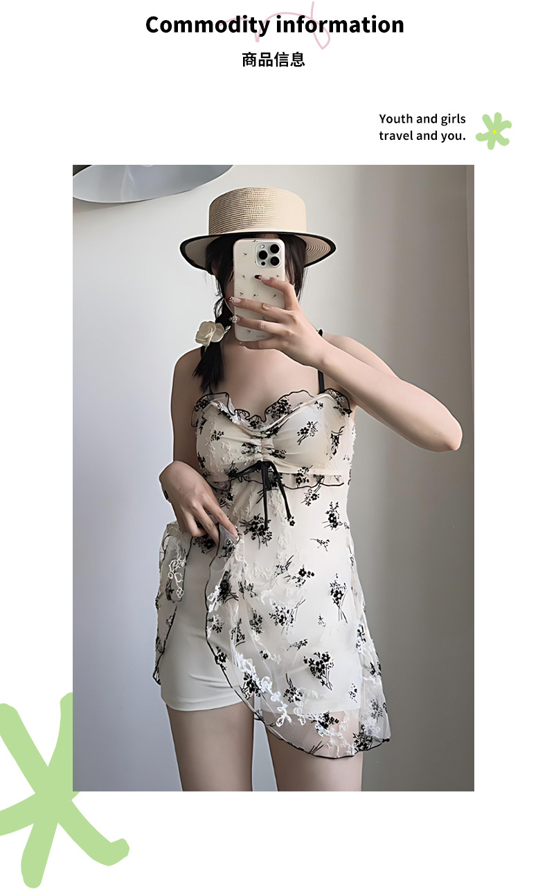 여성을위한 인기있는 순수한 욕망 스타일 메쉬 수영복 꽃 스트랩 서스펜더 원피스 스커트 스타일 온천 해변 휴가 수영복 도매스토어 가기