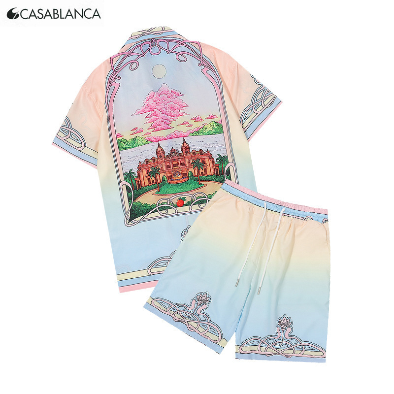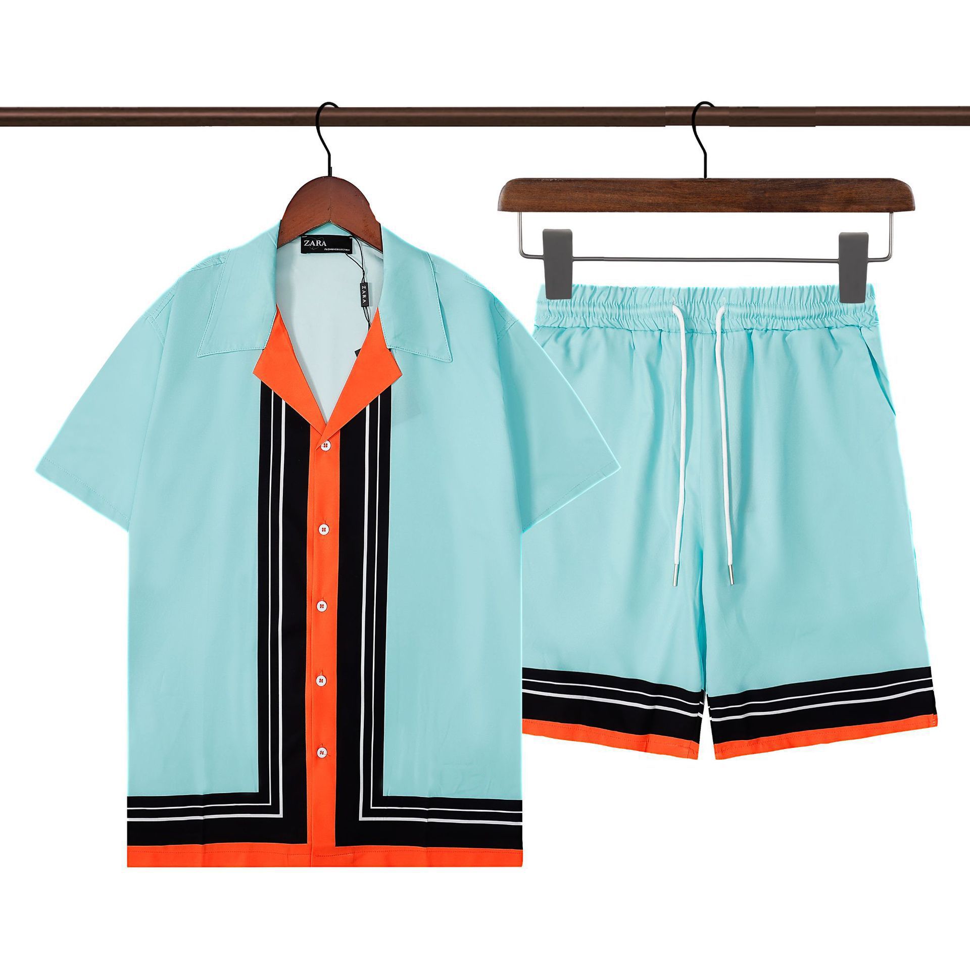 2025 크로스보더 아마존 남성 여름 신작 스트리트 패션 스트라이프 프린트 하와이 비치 슈트스토어 가기