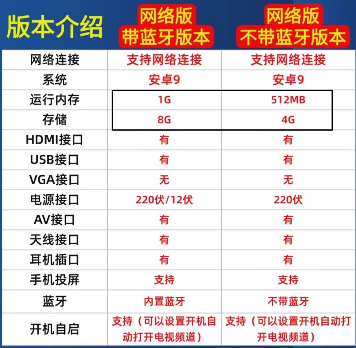 • Bluetooth 실행 메모리 1G+8G 스토리지를 갖춘 온라인 버전