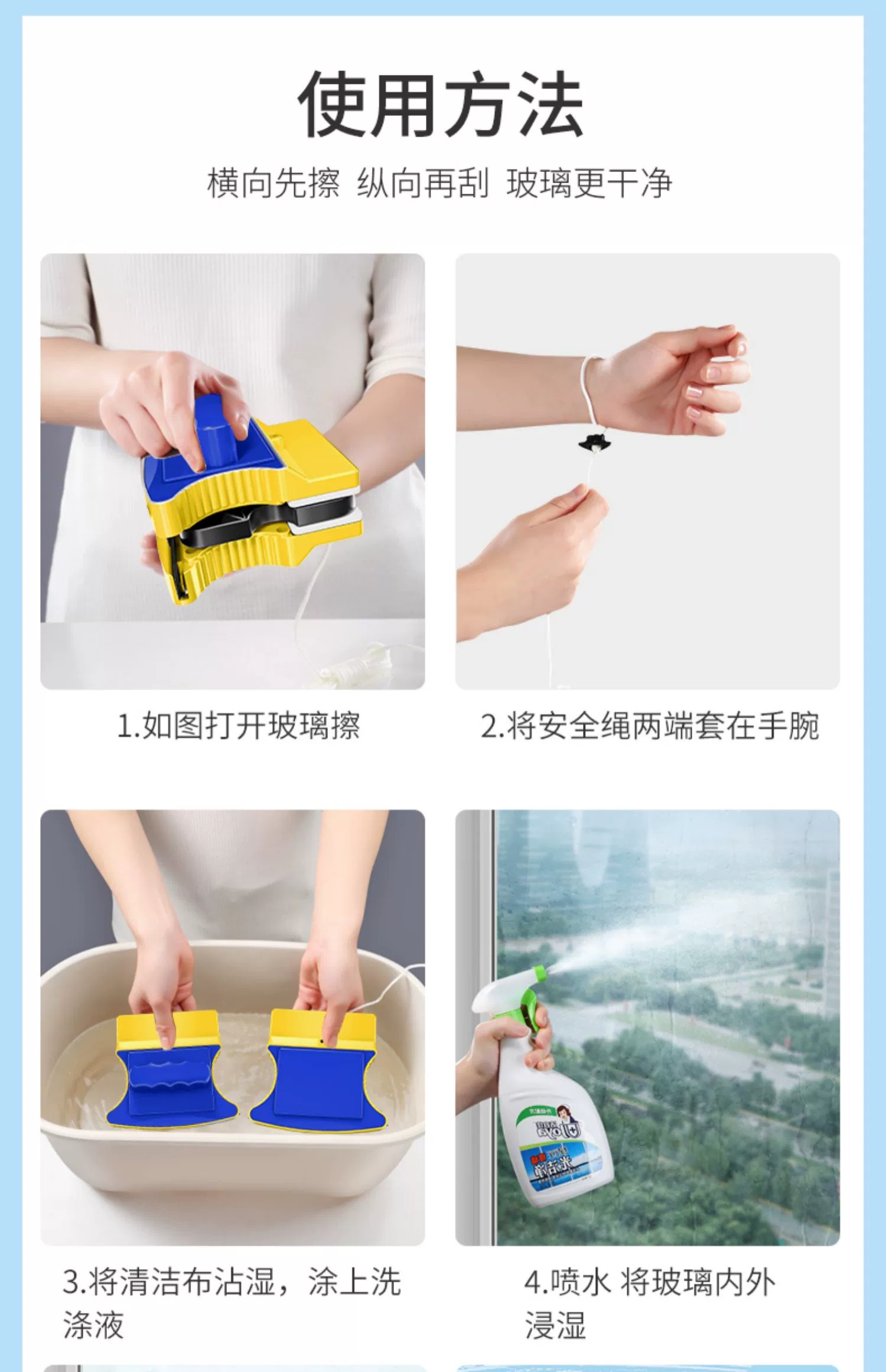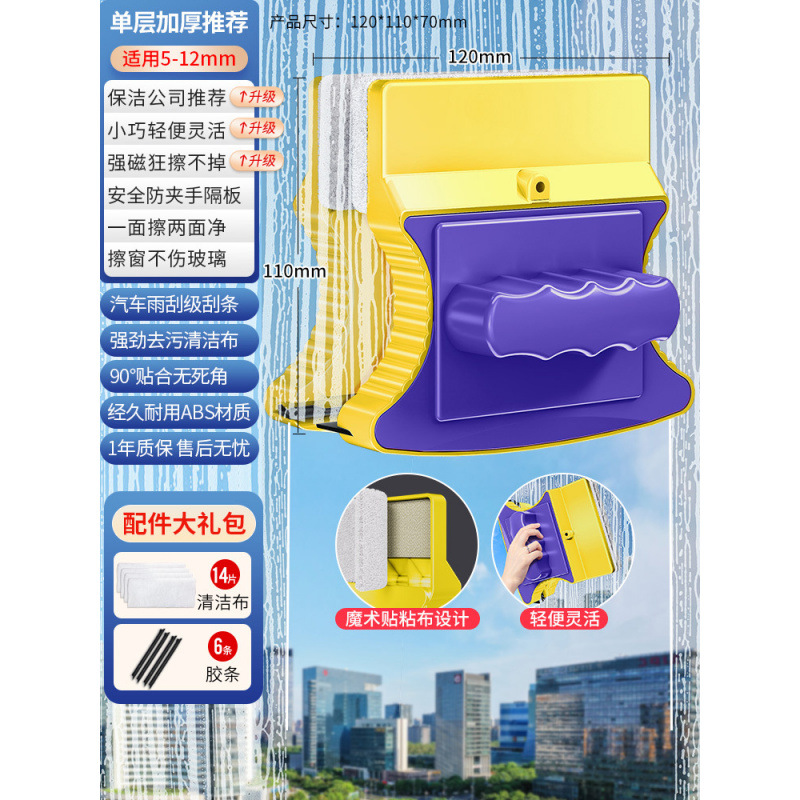 Yilaijie 유리 닦는 도구, 가정용 고층 창문 청소 도구, 유리 스크레이퍼, 양면 닦는 도구, 청소용 특수 도구스토어 가기