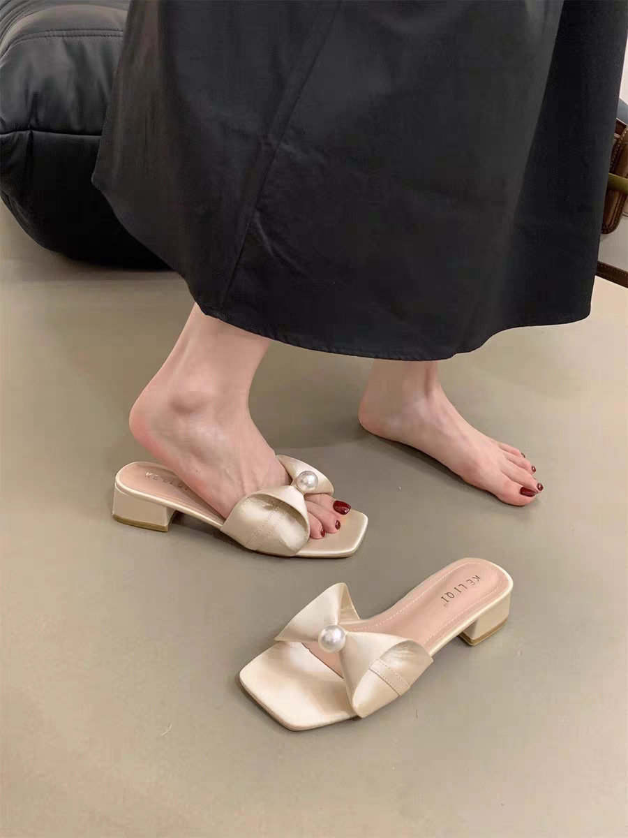 2025년 신상 여름 샌들, 요정 스타일, 스커트와 어울리는 심플한 미드힐 슈즈, 부드러운 아우터, 활용도 높은 샌들스토어 가기