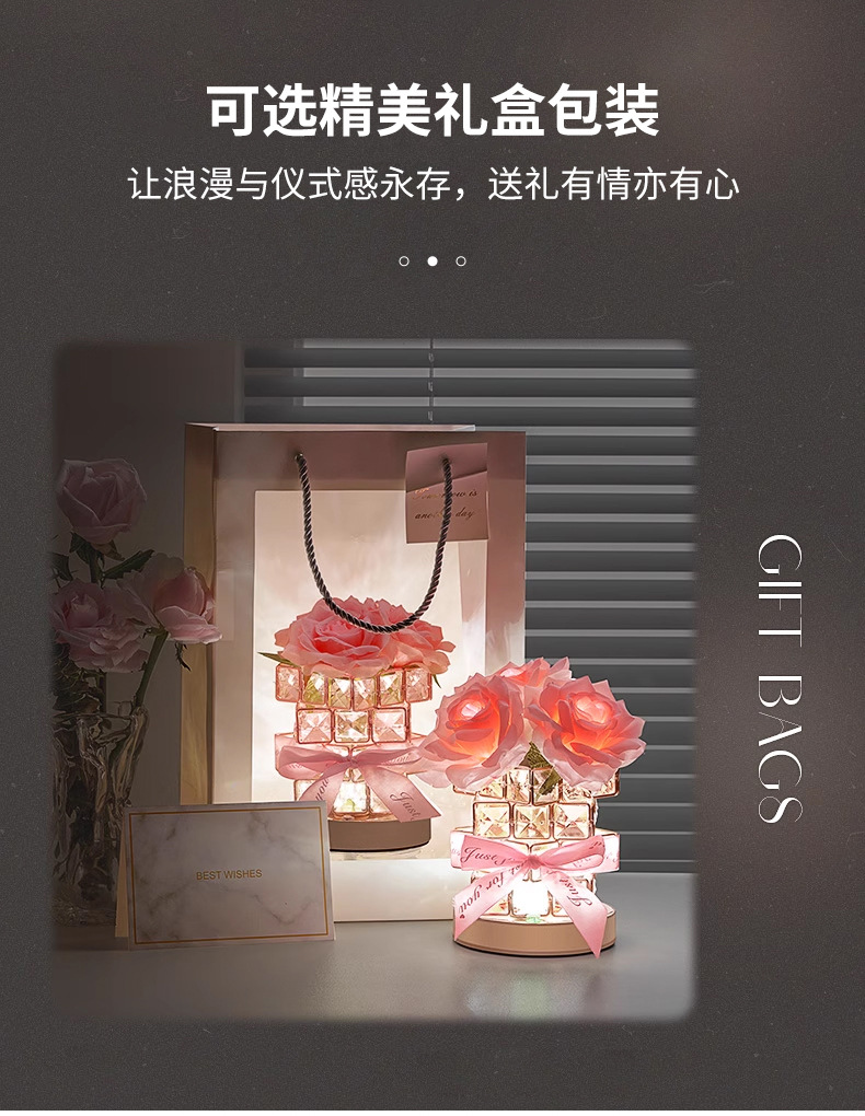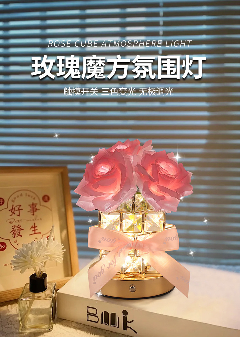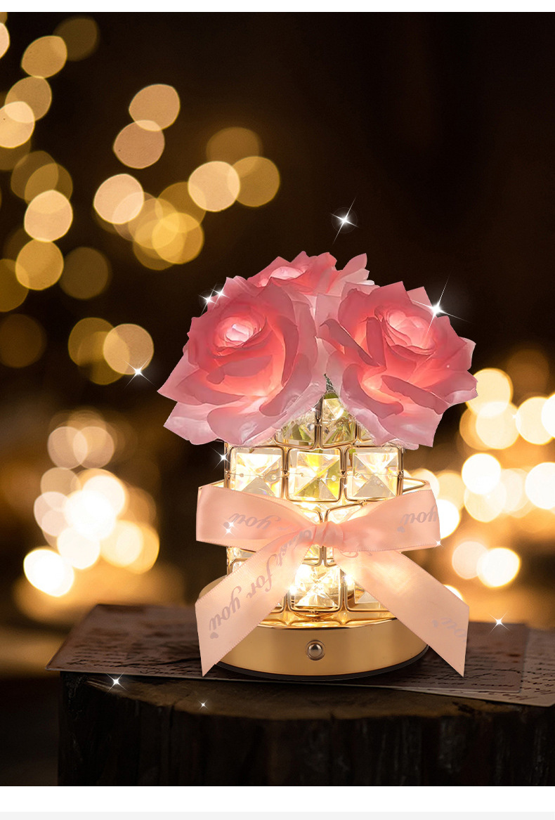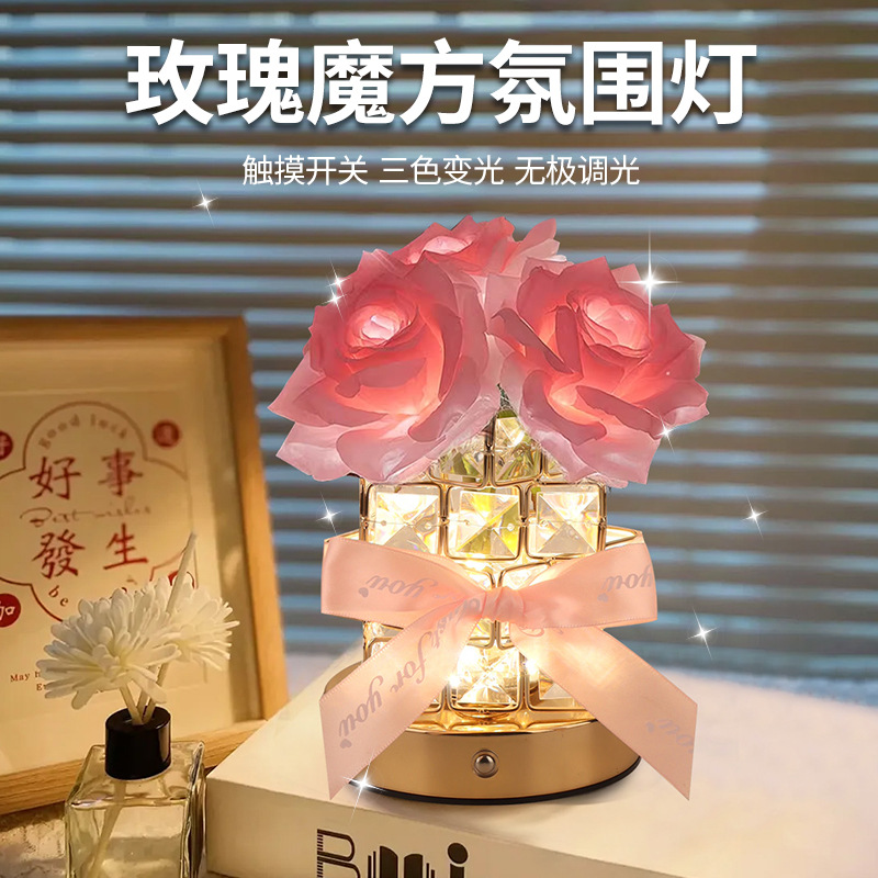 루빅스 큐브 LED 장미 밤 빛 장식 테이블 램프 영구 분위기 빛 발렌타인 데이 생일 선물 꽃다발 장식품