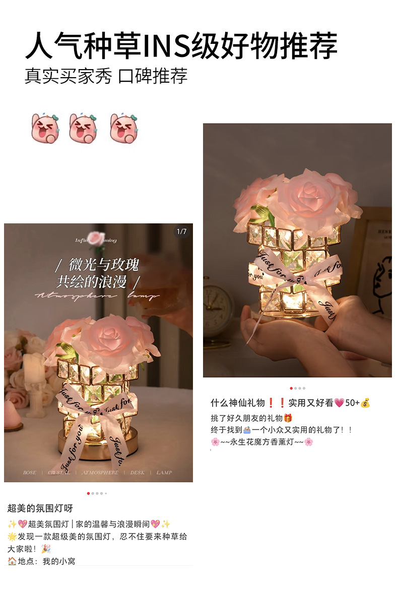 루빅스 큐브 LED 장미 밤 빛 장식 테이블 램프 영구 분위기 빛 발렌타인 데이 생일 선물 꽃다발 장식품스토어 가기
