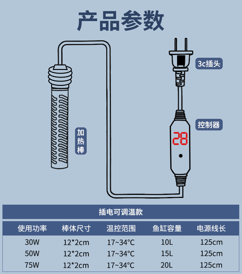 • 50W-디지털 디스플레이 온도 조절 17-34도