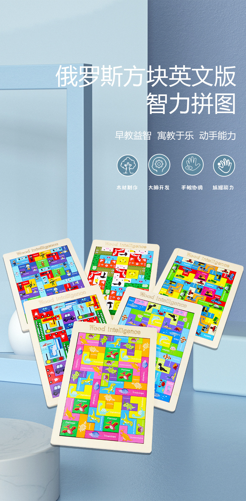 테트리스 조기 교육 퍼즐 나무 퍼즐 어린이 장난감 빌딩 블록 멀티 테마 퍼즐 크로스 보더 도매스토어 가기