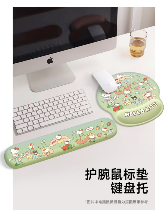 ISON-Kitty 고양이 손목 마우스 패드 여성용 손목 패드 미끄럼 방지 사무실 노트북 키보드 트레이스토어 가기
