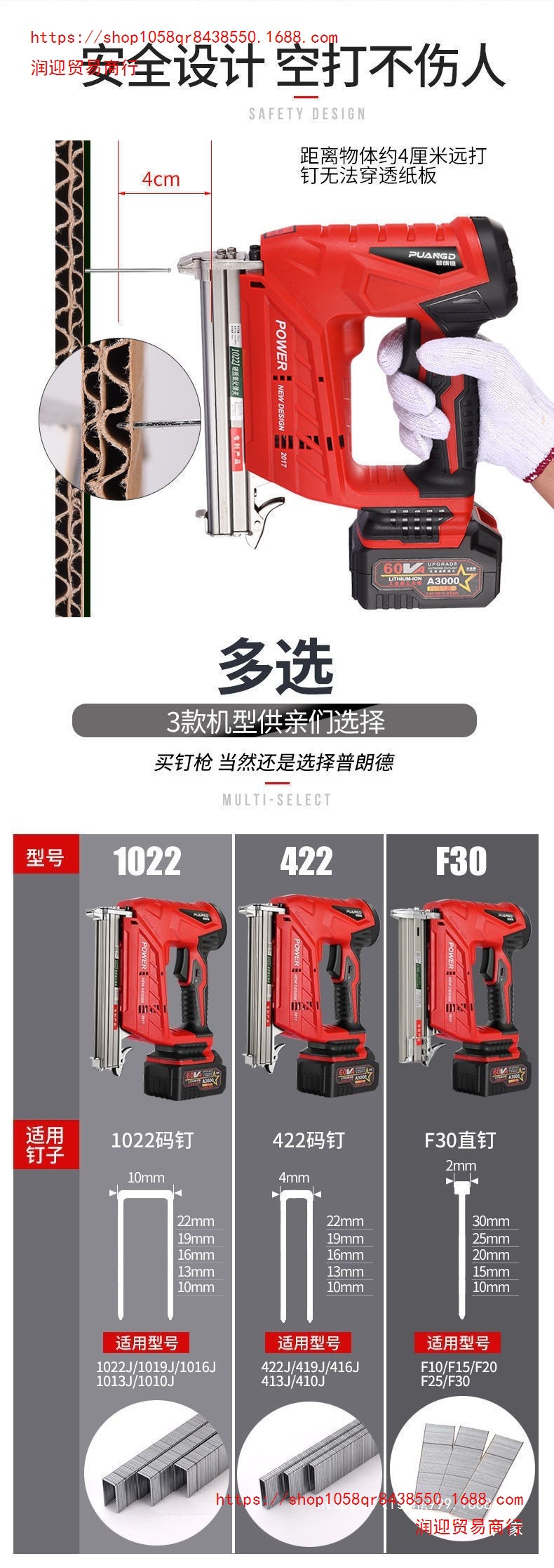 • F30 리튬 전동 네일건 [고출력]) (스타일_가정용 모델 48Vt [배터리 2개 및 1회 충전] + 직선 네일 1박스