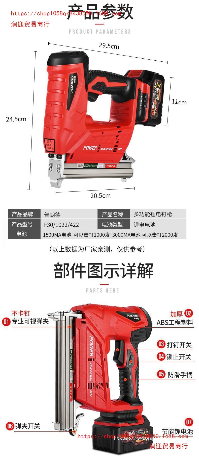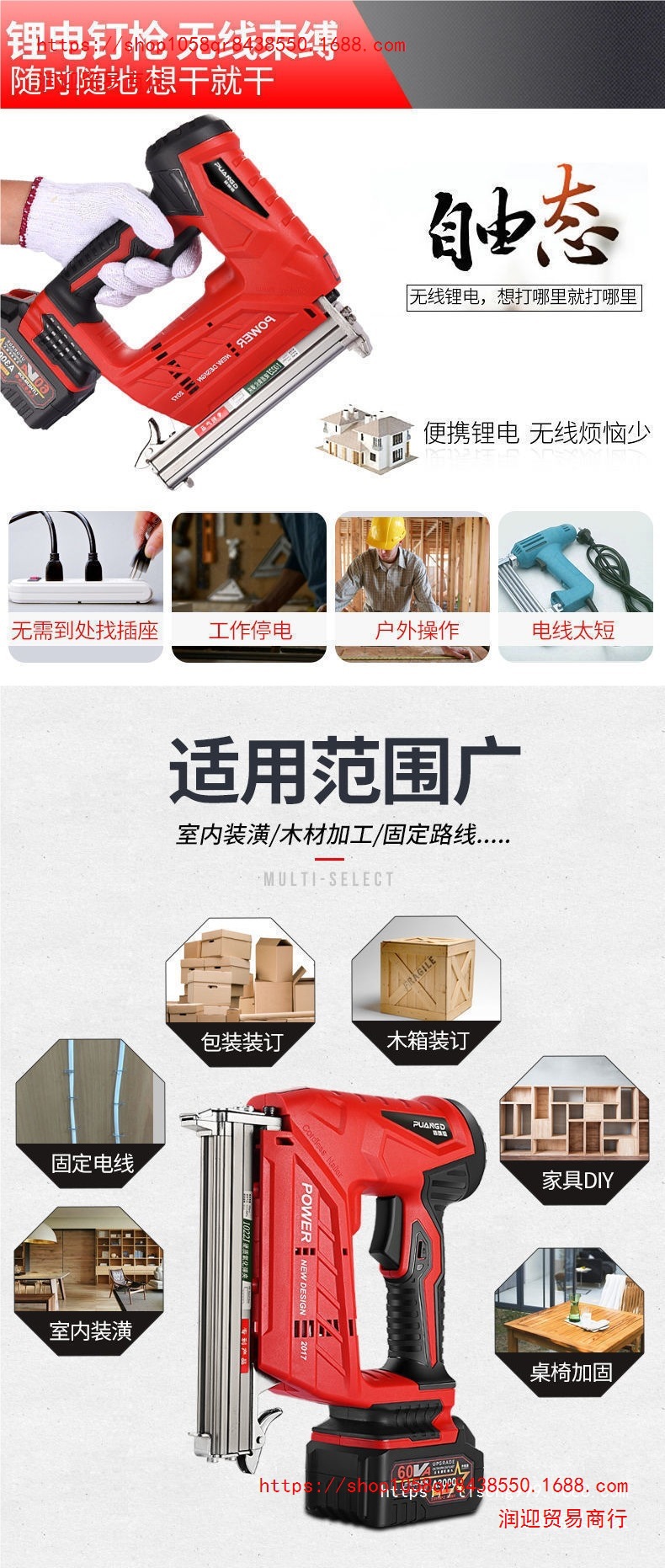 • F30 리튬 전동 네일건 [고출력]) (스타일_향상된 버전 68Vt [배터리 1개, 충전 1개] + 직선 못 1박스