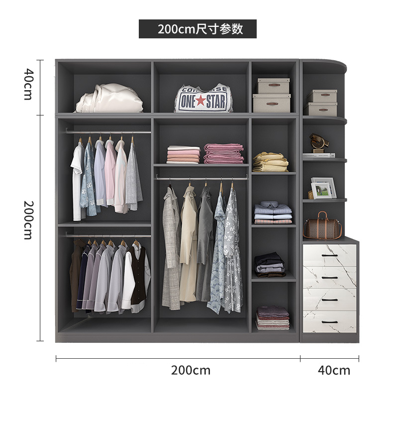 • [도어 5개] 싱글 옷장 200개 + 상단 수납장 + 서랍 측면 수납장