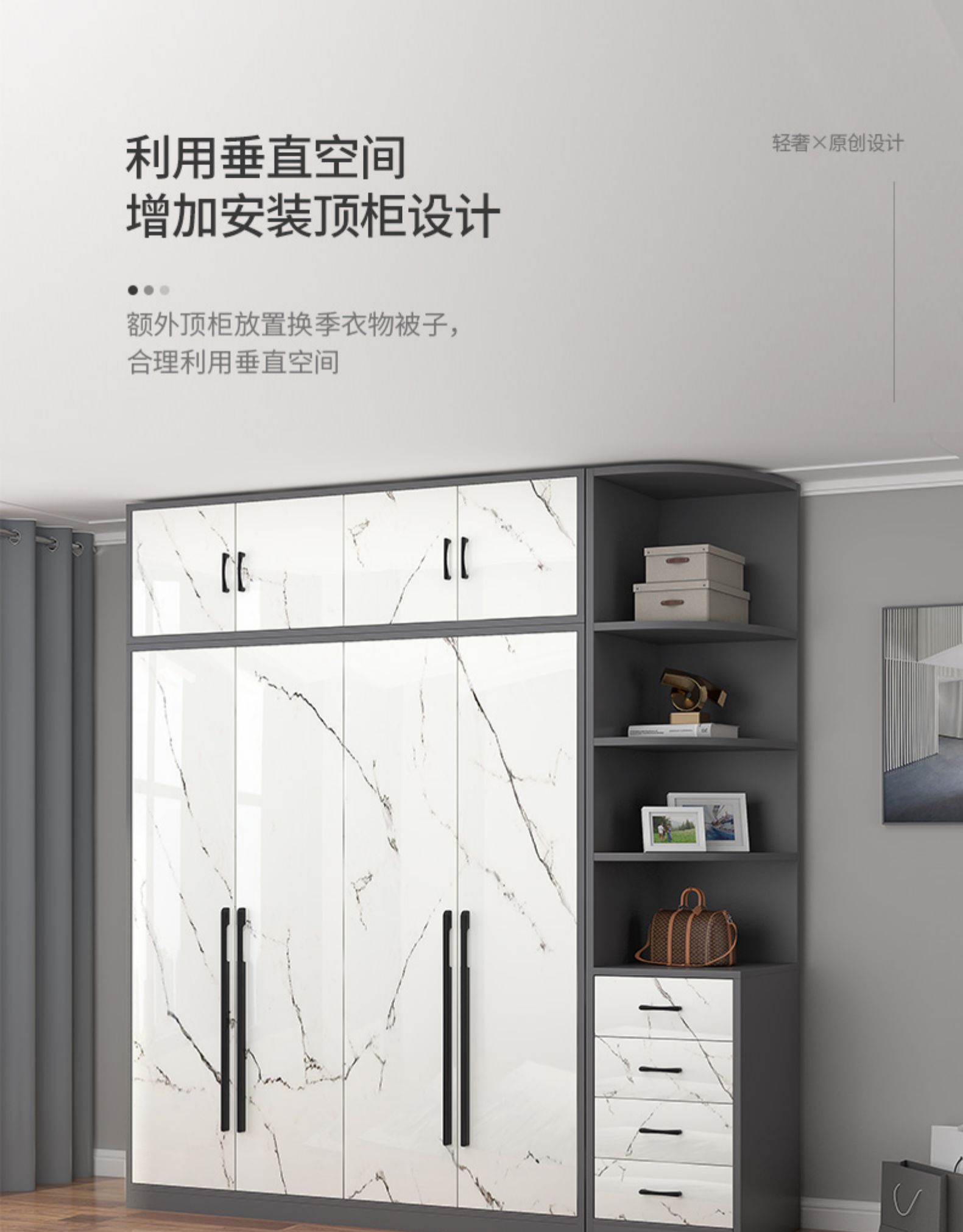 • [도어 4개] 160 싱글 옷장 + 상단 수납장 + 서랍 측면 수납장