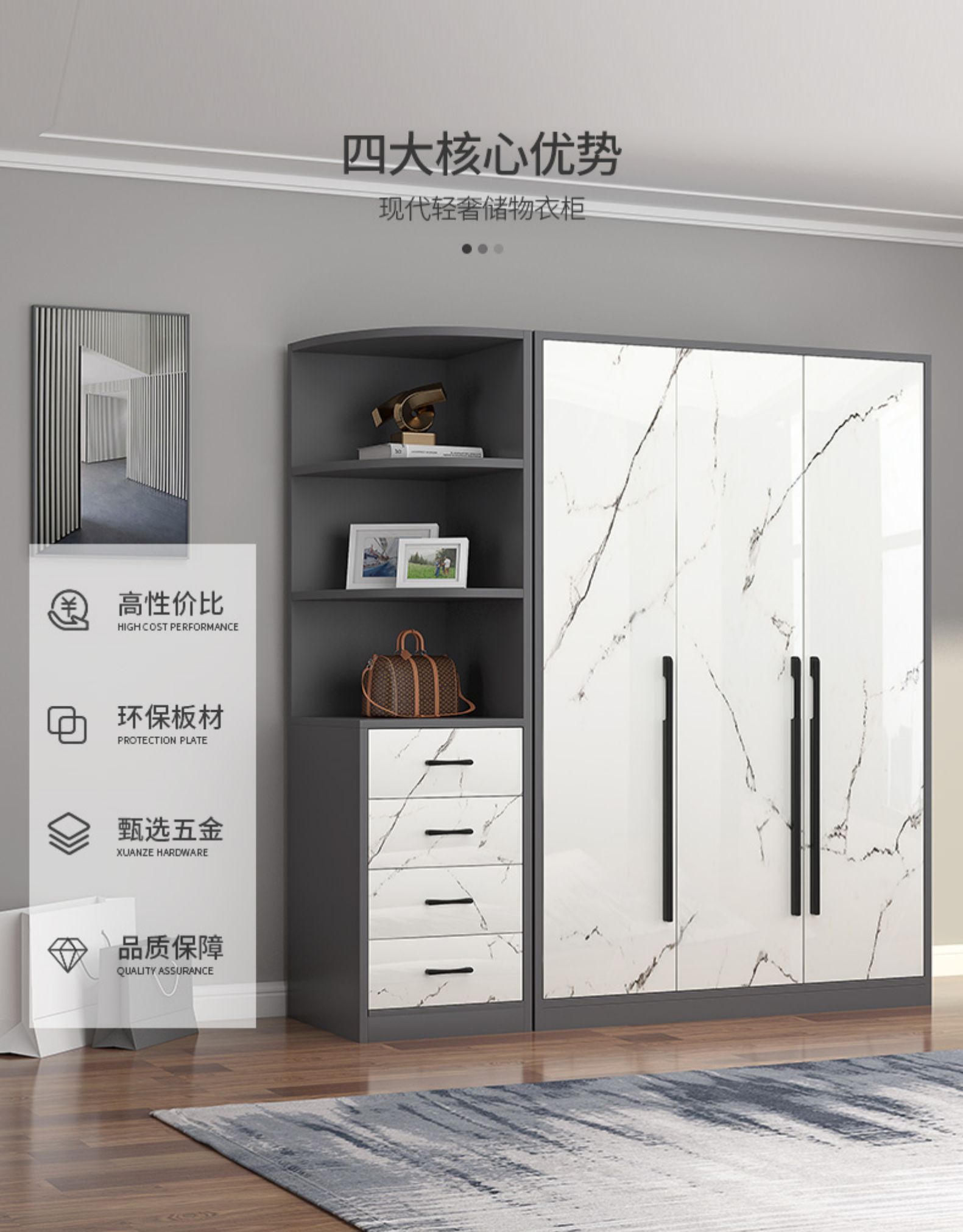 가벼운 고급 옷장 홈 침실 단단한 나무 현대 간단한 작은 아파트 나무 캐비닛 간단한 3 또는 4 도어 수납 옷장스토어 가기