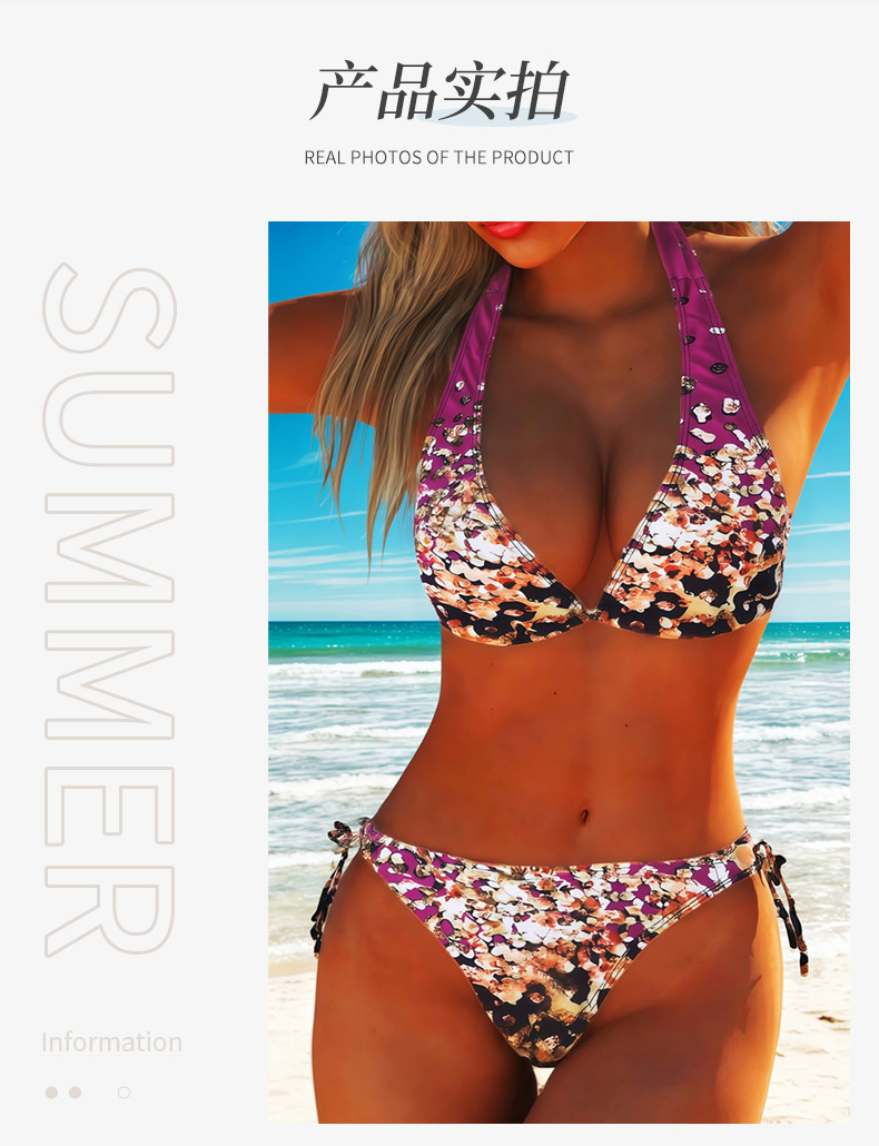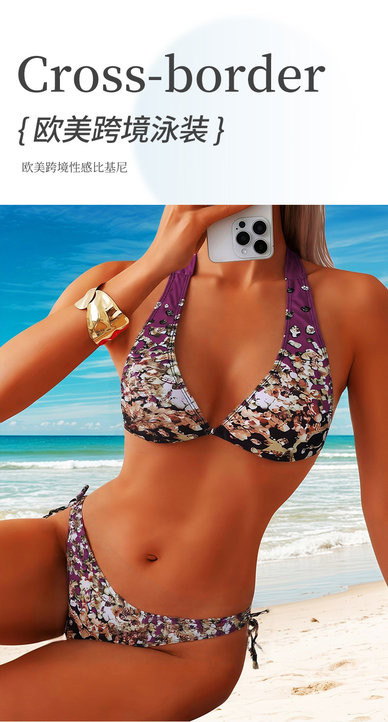 2025 새로운 유럽과 미국의 국경 간 패션 인쇄 섹시한 푸시 업 드로스트링 스트랩 스플릿 여성 비키니 수영복스토어 가기