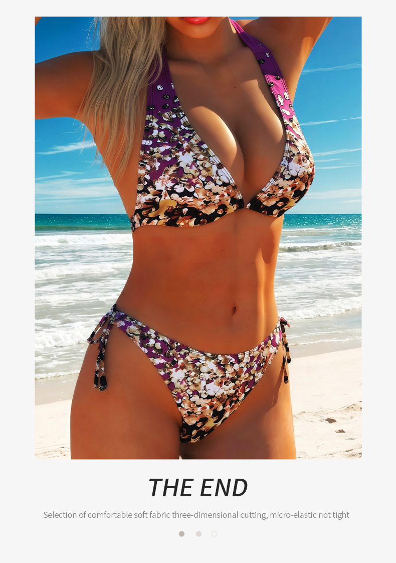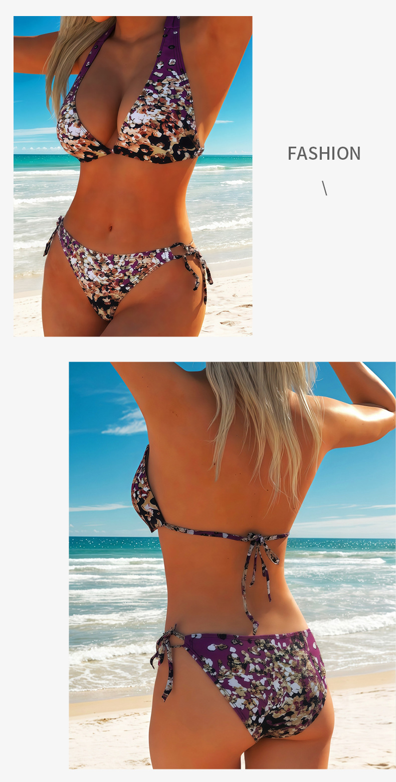 2025 새로운 유럽과 미국의 국경 간 패션 인쇄 섹시한 푸시 업 드로스트링 스트랩 스플릿 여성 비키니 수영복