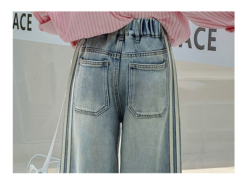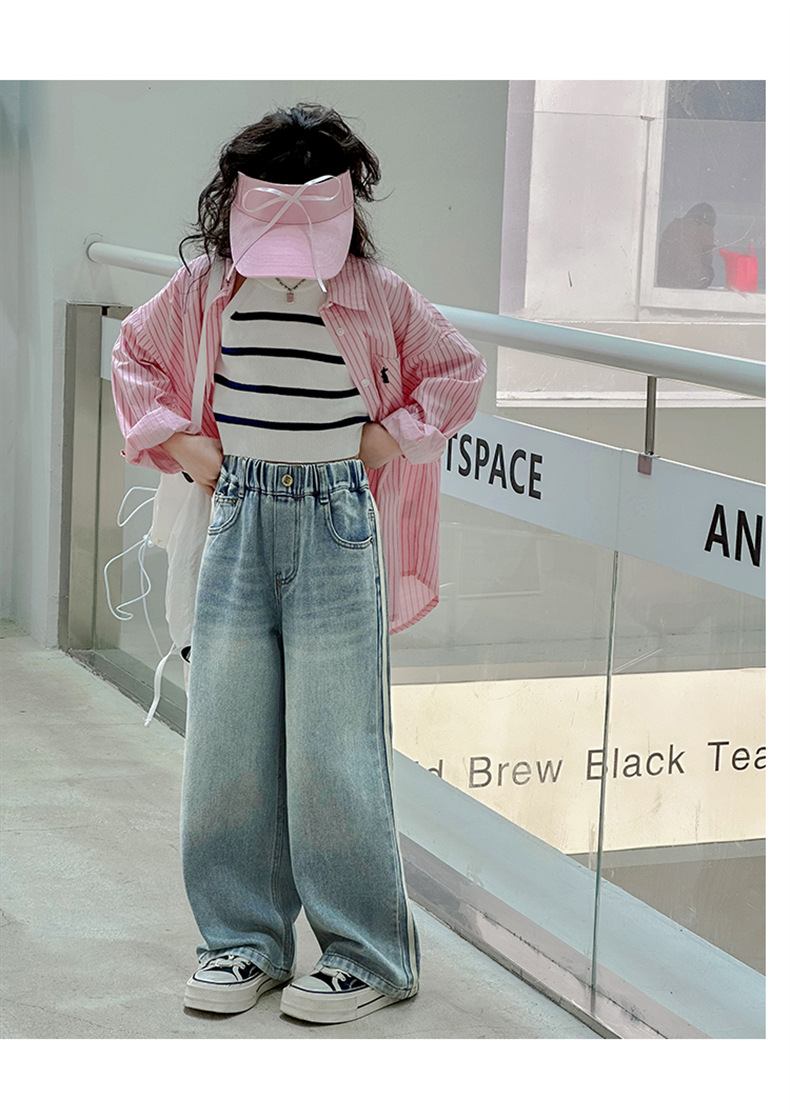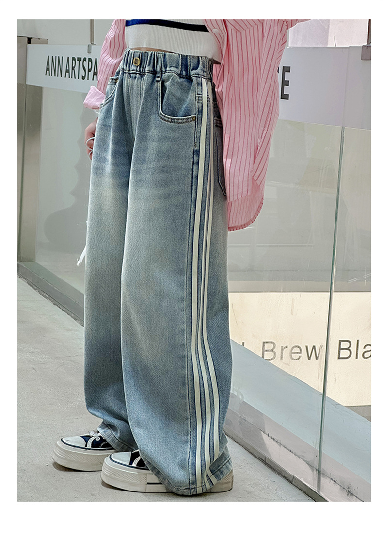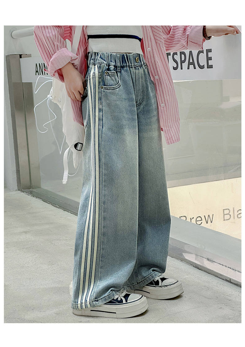 여아 웨빙 스트립 청바지 2025 가을 신작 아동 스타일 캐주얼 와이드 팬츠 긴 바지 아동 바지스토어 가기
